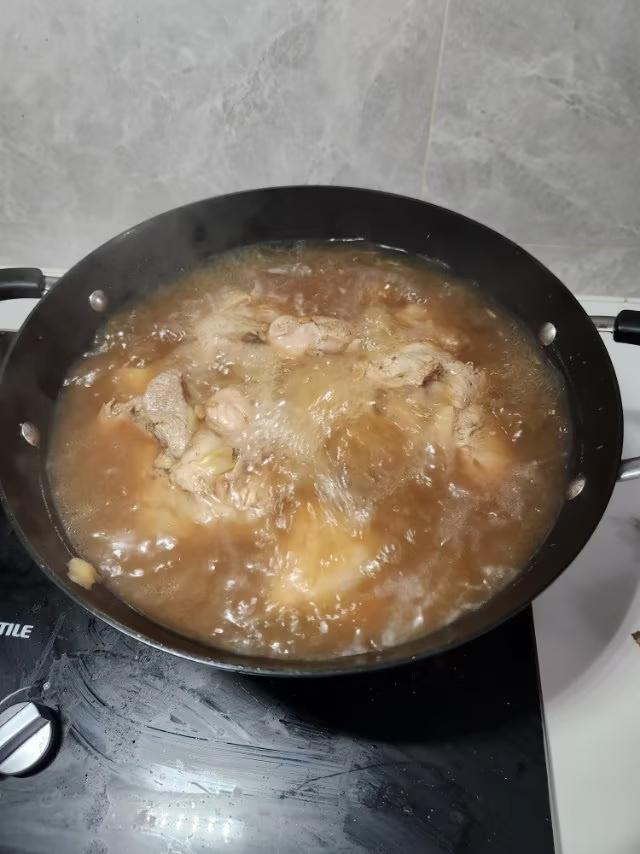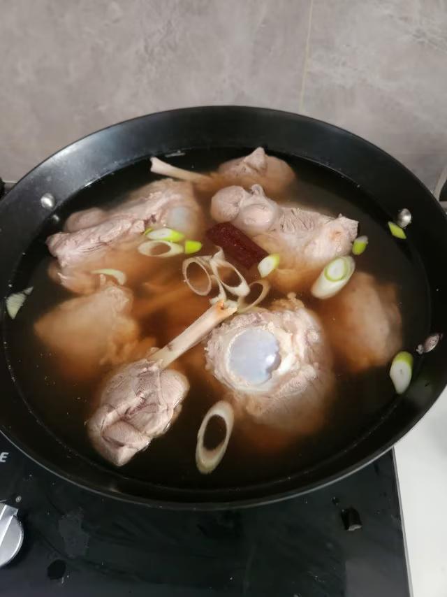 我炖的大骨头酱香十里,方法如下: 微头条 猪大骨头含优质蛋白、人体所需的九种氨基酸、有助于肌肉修复、组织再生和提高免疫。是春天助阳的好时机。 我今天去超市买了几个大骨头,只有7·5元一斤,不但瘦肉多而且厚实。 采取用锅炖的方法如下: 食材: 大骨头4斤。 调料:花椒、香叶、八角、桂皮装成调料盒,豆瓣酱、老抽、生抽、盐、白糖、鸡精。 做法: 1、浸泡:先把大骨头用凉水泡2小时,然后再用流水冲一遍。 2、焯水:把洗净的大骨头放入锅内,加入凉水淹没大骨头,倒入适量花椒水。顿开2分钟,以没血色为准。 3、加热水和调料:把大骨头捞出放另一锅中,一次加足85一100度的热水,(千万别加凉水。防柴)依次加入葱、姜片、调料盒、2小勺黄豆酱、鸡精、一小勺白糖、适量生抽、老抽。大火烧开转小火炖1小时,这时的肉已顿熟,然后打开锅盖加入适量盐(2小勺),再炖半小时。 这时就可以开吃了,配上大米饭,吃的超过瘾。 家常大骨汤 猪棒骨炖酸菜 酱骨头铁锅炖 骨头炖萝卜汤 大骨头炖肉菜 友友们还有什么好经验,评论一下吧!