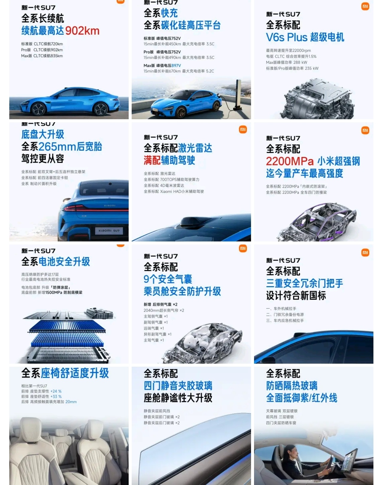雷军曝光新一代小米SU7配置这么多全系,新Su7诚意满满呀,升级很大,看来新Su