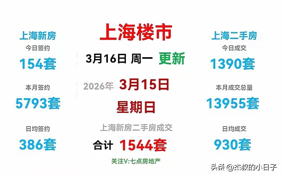 大胆预测:3月份二手房成交破3万套! 一点问题没有! 之前大家还在质疑,说上海三月份也就是2.3万套左右,不会超过2.5万套。 按这个速度,3万套,没有任何问题!上周直接二手房成交破7200套,一个礼拜! 单日,周六1472套,周天1390套! 你敢信?5年新高! 所以,不要再质疑上海楼市小阳春!跑不掉!我们要更多的关注其他一线城市,二线城市是否有好的变化。