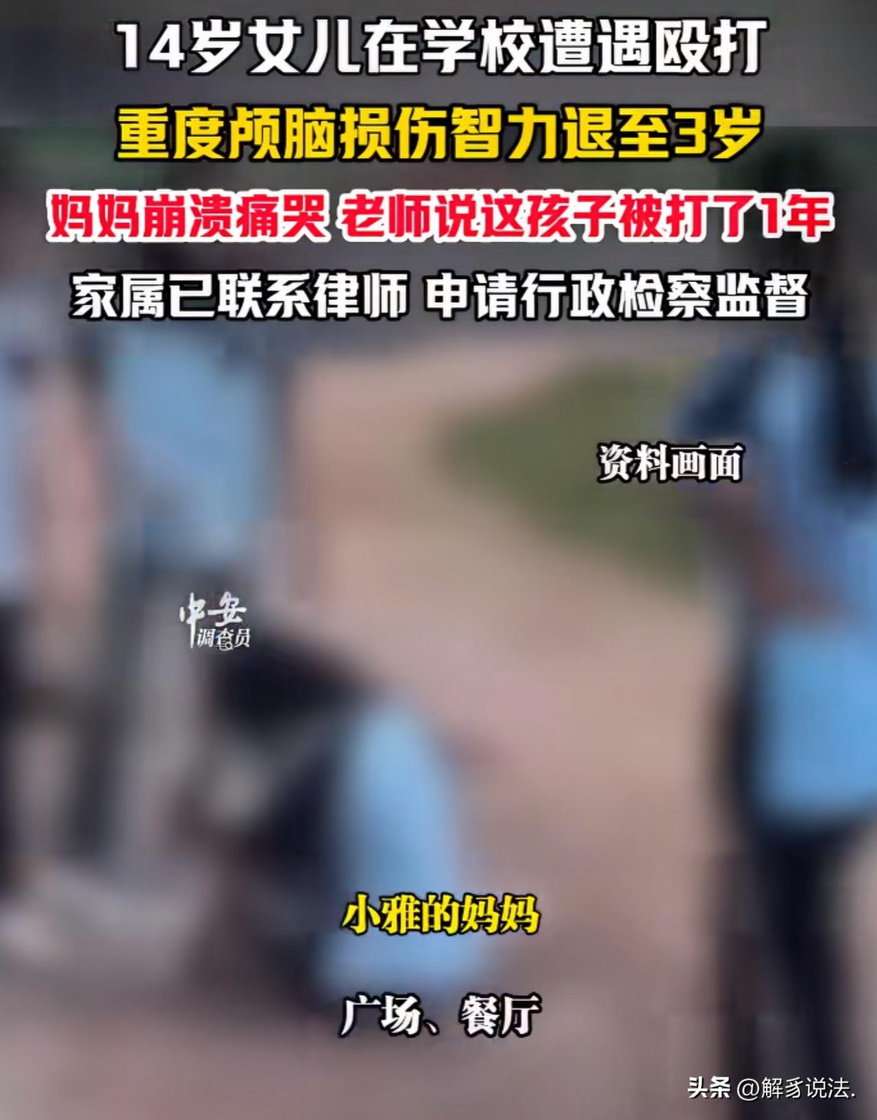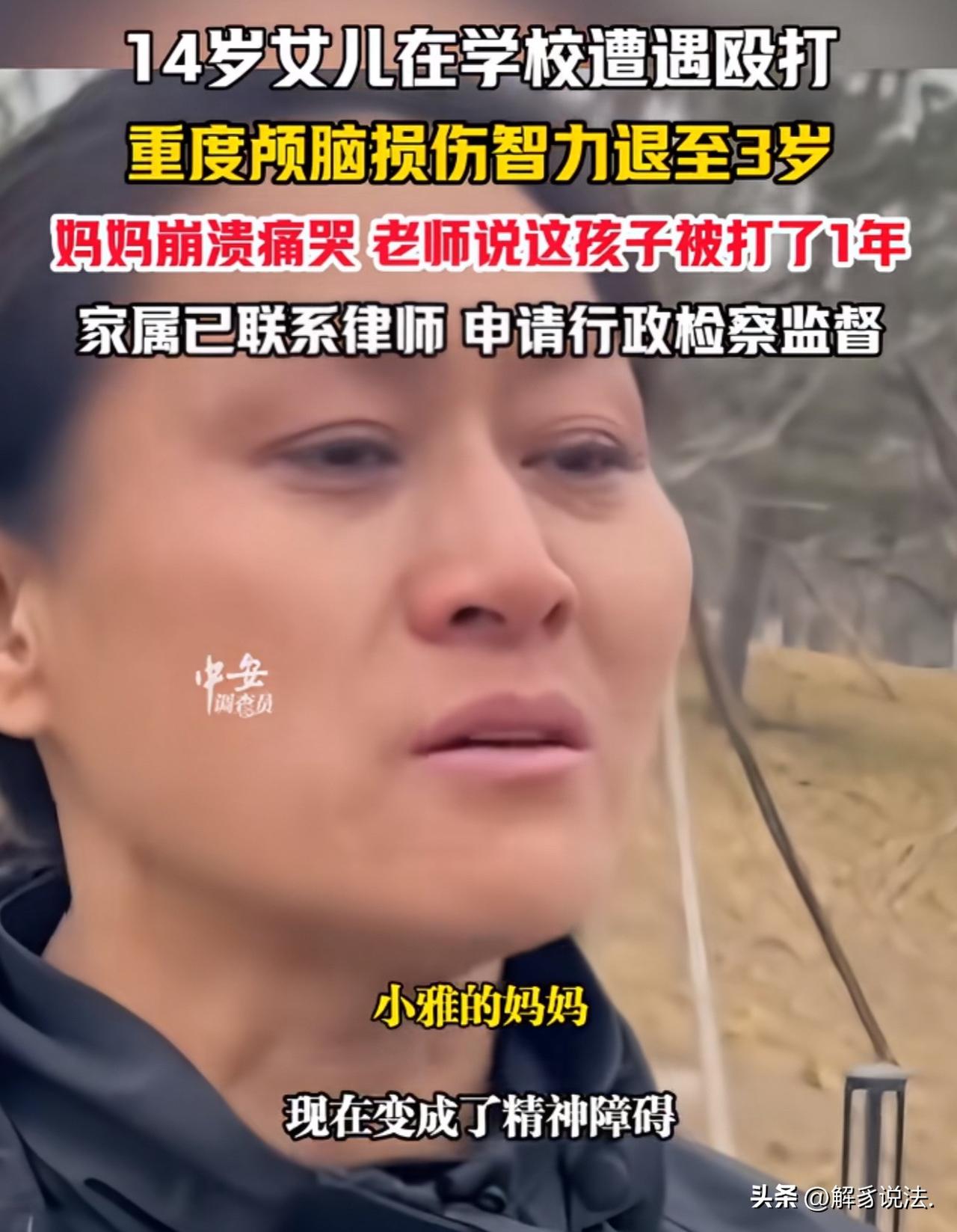 “令人发指!”山西原平,14岁女孩在学校被2名同学长达一年欺负,不管是在卫生间、楼道、寝室、广场、餐厅,见到女孩一次打她一次。最后一次,被两名同学猛踩头部,导致她重度颅脑损伤,激素治疗后,体重增加到200斤,智力退化直接到3岁。女孩母亲愤怒报案,谁知,警方竟不予立案。母亲痛哭流涕:一年的遭遇,毁了我女儿的一生。 14岁的小雅,再也不是那个活泼爱笑、聪明伶俐的小姑娘了。 她眼神呆滞,反应迟钝,智力停留在3岁孩子的水平,吃饭要人喂,穿衣要人帮,连最简单的上厕所都需要妈妈寸步不离地照顾。 因为长期接受激素治疗,她的体重一路飙升到两百斤,整个人臃肿不堪,再也看不出曾经青春少女的模样。 小雅妈妈每次看着眼前这个陌生又可怜的女儿,心就像被刀割一样疼。 她无数次在夜里捶着自己的胸口痛哭,恨自己太粗心、太迟钝。 整整一年时间,女儿天天被人欺负,她这个当妈的竟然一点都没察觉,如果能早一点发现、早一点阻止,孩子也不会落得今天这个下场。 原来,在过去的一年里,小雅在学校里被两名同学盯上了她,不管是在学校的卫生间、走廊、宿舍,还是在外面的广场、饭店,只要那两个同学心里不顺,就把小雅当成出气筒,对她拳打脚踢。 这样的折磨,不是一次两次,而是整整持续了一年。 小雅每天都活在恐惧里,身上总是青一块紫一块,疼得钻心,却不敢告诉老师,更不敢跟妈妈说一句。 她怕说了之后,会遭到更狠的报复,只能一个人默默扛着。 直到最后一次,她被同学猛踹头部,造成了重度颅脑损伤,被送进医院抢救。 等小雅妈妈赶到医院,看到躺在病床上昏迷不醒的女儿,她的天彻底塌了。 这时候,她才知道,女儿在她看不见的地方,忍受了一整年的地狱般的生活。 小雅虽然捡回一条命,却永远失去了健康的大脑和正常的人生。 小雅妈妈悲愤交加,立刻报了警,她只希望法律能给女儿一个公道,让施暴的人受到惩罚。可让她绝望的是,苦苦等来的,却是一张不予立案通知书。 那一刻,小雅妈妈彻底崩溃了,她抱着通知书坐在地上放声大哭:一年的霸凌,毁了我女儿一辈子,她才14岁啊! 即便如此,她也没有倒下。 为了给小雅讨回公道,她四处找律师,申请行政检察监督。前路再难,她也要拼尽全力,为女儿争一个说法。 《刑法》第234条:故意伤害他人身体的,处三年以下有期徒刑、拘役或者管制;致人重伤的,处三年以上十年以下有期徒刑;致人死亡或者以特别残忍手段致人重伤造成严重残疾的,处十年以上有期徒刑、无期徒刑或者死刑。 两名施暴者长期殴打小雅并致其重度颅脑损伤、智力严重退化,已符合故意伤害致人重伤的构成要件。 已满14周岁者故意伤害致人重伤,依法应负刑事责任。 警方不予立案,母亲可通过刑事立案监督、行政检察监督推动重新审查。 即便施暴者因年龄未被追究刑责,其监护人仍需承担民事赔偿,学校未有效制止欺凌也应承担相应管理责任。 这份来自一位母亲的执着维权,也深深触动了无数网友的心弦,大家纷纷分享自己或身边人的经历,诉说着藏在心底的委屈与共鸣。 有网友坦言:我女儿转校时,因为是新生,被老生欺负。我跟家长、班主任沟通了一个月,毫无效果。无奈之下,我自己冲进教室发了火,之后把女儿儿子都送去学散打,送出去参加比赛。现在我再也不担心了,我家孩子玩伴越来越多,每天都开开心心的。 也有网友回忆起自己的童年:小学三年级,我的同桌是个留级生,经常欺负我。一张课桌,我只能占三分之一,他占三分之二。我告诉过班主任,可他刚从办公室回来就狠狠捶我一拳,差点把我打吐!我不敢告诉父母,我知道他们不会帮我,只会觉得我多事。就这样忍了大半个学期,后来换了位置,他就开始折磨新同桌了。不是不想告诉老师家长,是真的没用啊!老师只是表面应付一下,结果反而会招来更多的殴打!不是所有家长都真正关心孩子的!
