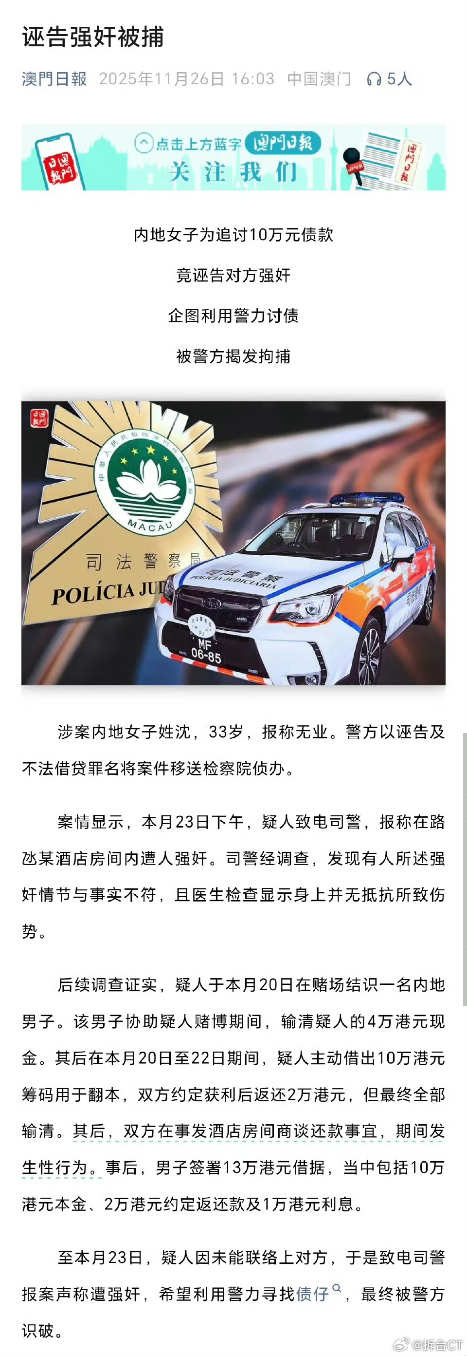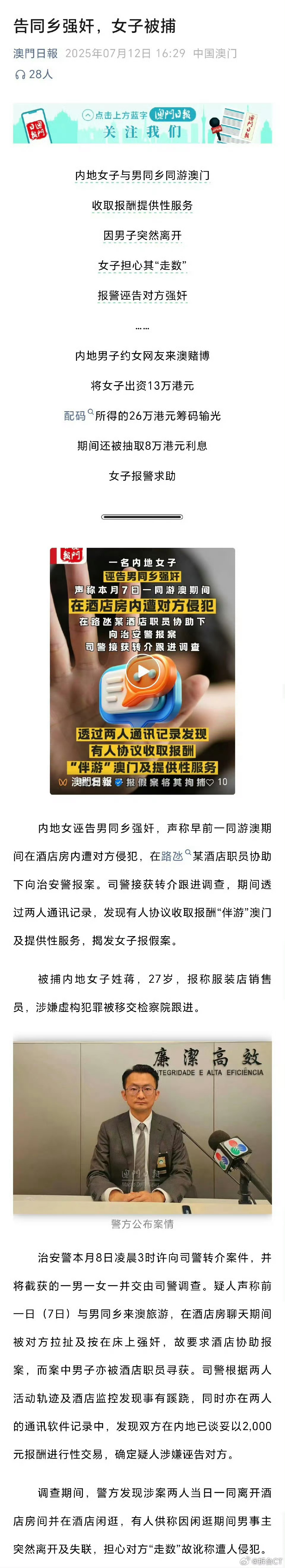 得亏这事儿是发生在澳门,警方接警后先是走访调查,而不是先把男方拘捕,要求其自证清白。