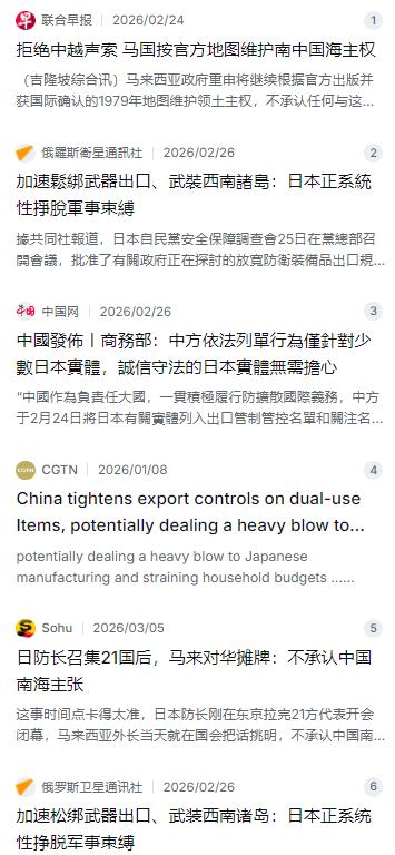 中日周边局势迎来新动向,马来西亚向国际社会公开表明立场,联合21个国家共同发声,率先在相关议题上采取行动,让本就复杂的亚太格局再起波澜。 麻烦看官老爷们右上角点击一下“关注”,既方便您进行讨论和分享,又能给您带来不一样的参与感,感谢您的支持! 最近这段时间,亚太这块儿的局势可以说是暗流涌动,表面上看着风平浪静,底下却是波涛汹涌。就在前几天,马来西亚政府在国会开会的时候,直接就把话给挑明了:不承认中国在南海的主权主张,只认自己1979年画的那张老地图。这话说得可是一点没留情面,相当于公开拒绝了咱们的声索,让大家都挺意外。毕竟以前马来西亚在处理这事上相对低调,这次突然来这么一出,立马引起了各方的高度关注。 这还没完,更巧的是,就在马来西亚表态的前两天,日本防卫大臣小泉进次郎刚在东京搞了个大动作,拉上21个国家开了个防长级别的会议。这次会议不仅是14个太平洋岛国派了代表,还首次邀请了印尼、马来西亚、菲律宾、越南等7个东盟国家来当观察员,加起来正好21方。会上日本把“自由开放的印太”喊得震天响,还说要给这些岛国提供军事援助,帮他们培养防务人才。这架势,摆明了就是想扩大自己在太平洋地区的影响力,顺带着给周边国家“打打气”。 日本这次的动作不止是开会这么简单。他们国内正在加速推动修改“防卫装备转移三原则”,想放开武器出口的限制。以前日本卖的装备只能干点救援、运输、扫雷这种非打仗的活儿,现在他们想改,想把战斗机、护卫舰这类能真刀真枪干的武器也卖出去。而且他们还放出话来,计划在2030年之前,在距离咱们台湾岛只有110公里的与那国岛上部署导弹部队。这明摆着是在试探底线,针对性太强了。 面对日本这种步步紧逼的架势,咱们这边也没闲着,直接打在了七寸上。就在2月24日,中国商务部甩出了一份名单,把20家日本的实体列入了出口管制管控名单,另外还有20家被放进了“关注名单”。这意味着啥?意味着涉及到军民两用的物项,包括高端机床、航天零件,还有那些被卡脖子的关键材料,以后对这几家日本公司就不能随便出口了。日本共同社和NHK都报道了这事,三菱重工、川崎重工、IHI这些跟军工沾边的巨头全都在名单里。 这一招确实够狠,尤其是稀土这块,那可是现代军工的“维生素”。日本虽然这些年嚷嚷着要降低对中国稀土的依赖,但在一些重稀土元素上,比如镝、铽这些,他们对咱们的进口依赖度几乎还是100%。要是没了这些材料,日本造个导弹、搞个隐形战机、做点高精尖电子元件,那都得抓瞎。有日本智库估算过,要是这种管制持续一年,日本的经济损失可能高达2.6万亿日元,直接拉低GDP将近半个点。老百姓的日子也不好过,东西造不出来,物价就得涨,最后买单的还是普通家庭。 话说回来,马来西亚这次突然硬气起来,背后其实也有自己的小算盘。一方面,他们在南海确实占了几个岛礁,像弹丸礁那边不光填海建了机场,还搞起了旅游,周边海域的油气田更是开采了几十年,这些都是实实在在的油水。如果坐下来谈判,这些既得利益可能就得拿出来掰扯,不如干脆不认账,把自己画的线当金科玉律。另一方面,马来西亚国内政治也有需要,用主权问题来凝聚民心、拉抬选票,这招在哪儿都管用。正好借着日本搭的这个台子,把嗓门抬高一点,既能在西方那边加点分,又能在跟咱们打交道时多要点筹码。 马来西亚外长莫哈末哈山在国会说得明白,他们只认1979年自己出版的那张地图,说这张图是获得国际确认的。按他的说法,马来西亚和中国之间根本就不存在重叠的海域,所以也从来没有和中国就这事谈判过。这话听起来硬气,但实际上那张图是马来西亚单方面发布的,当年画的时候就把南沙群岛的一部分划进了自家范围。从国际法理上讲,这种单方面主张跟咱们老祖宗留下的历史依据压根没法比。 对于日本这种搞“再军事化”的小动作,咱们外交部发言人毛宁也把话挑明了:因为日本有过侵略历史,所以他们的军事动向大家都盯着呢。现在他们又是想拥核,又是想放开武器出口,还想修改和平宪法,这不就是右翼势力想翻案吗?国际社会真得提高警惕,不能让战后的和平秩序被这帮人给拆了。这话说得确实在理,防人之心不可无。 日本那边被咱们上了出口管制名单之后,也挺着急。日本外务省的局长马上就把中国驻日使馆的官员叫过去,提了强烈抗议,要求立刻撤销。但这事儿哪有那么简单,咱们商务部发言人也说了,这就是为了制止日本“再军事化”的危险企图,完全正当合理,诚信守法的日本企业不用担心,咱们只针对那些不老实的主。 说到底,现在亚太这盘棋是越来越复杂。马来西亚的表态,日本的扩军,咱们的反制,这些事一环扣一环,背后折射出的是大国之间在主权、安全、经济利益上的深层博弈。南海这块地方,谁也别想靠开几次会、喊几句口号就能翻盘。