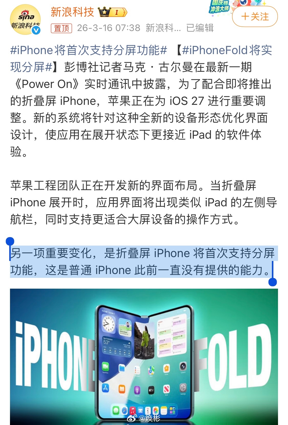 这么高级的重大创新,iPhoneFold起步价不得2个W以上iPhone将首次支持分屏功能