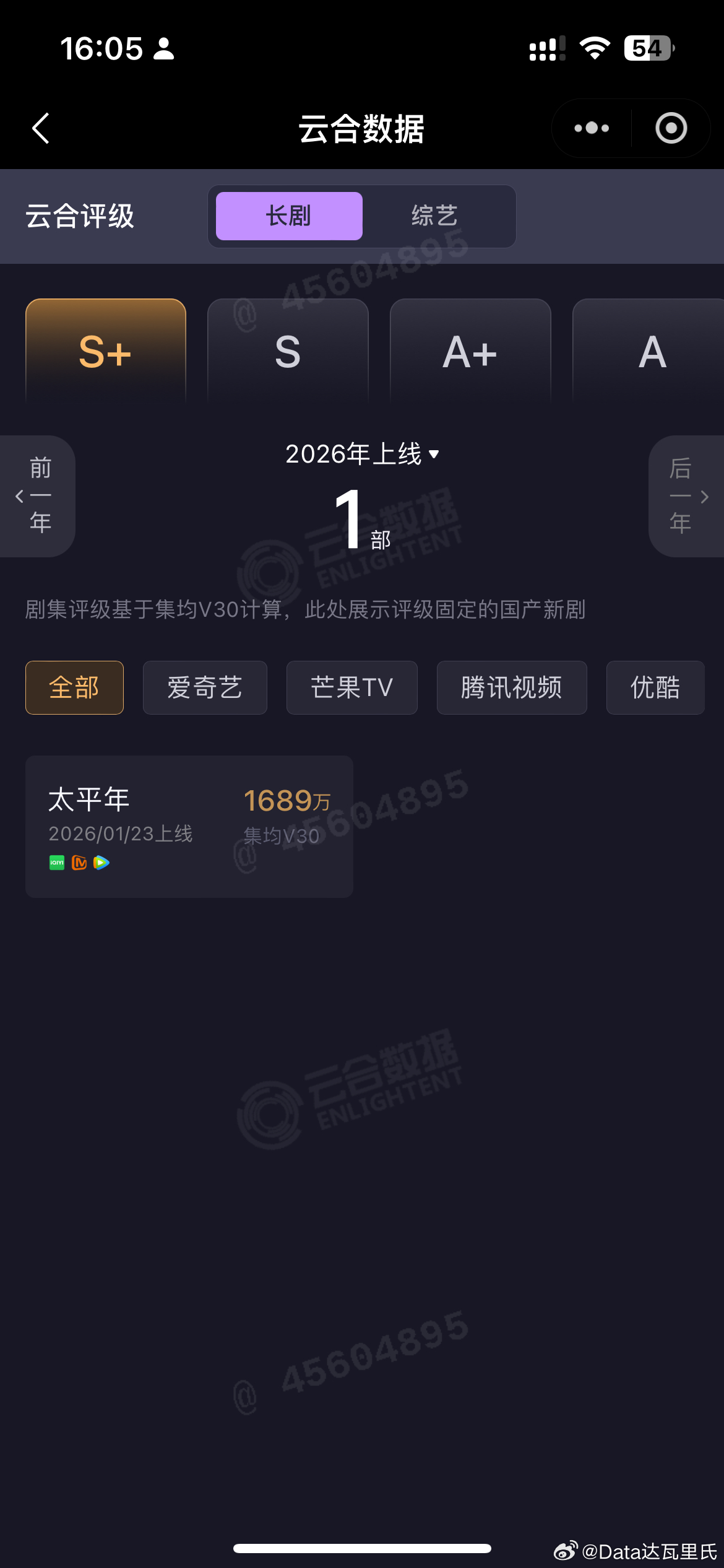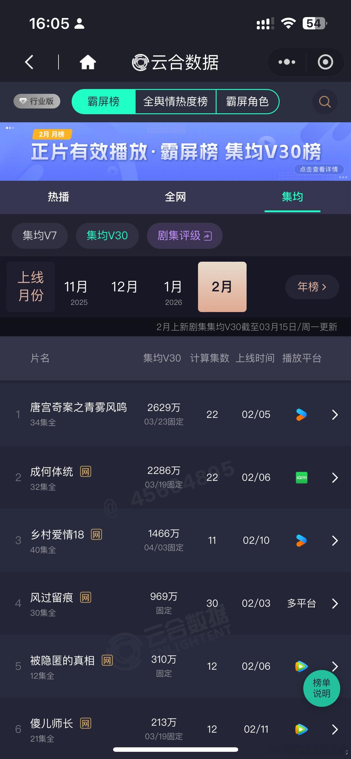 ⚠️云合集均V30,不是热播期集均数据