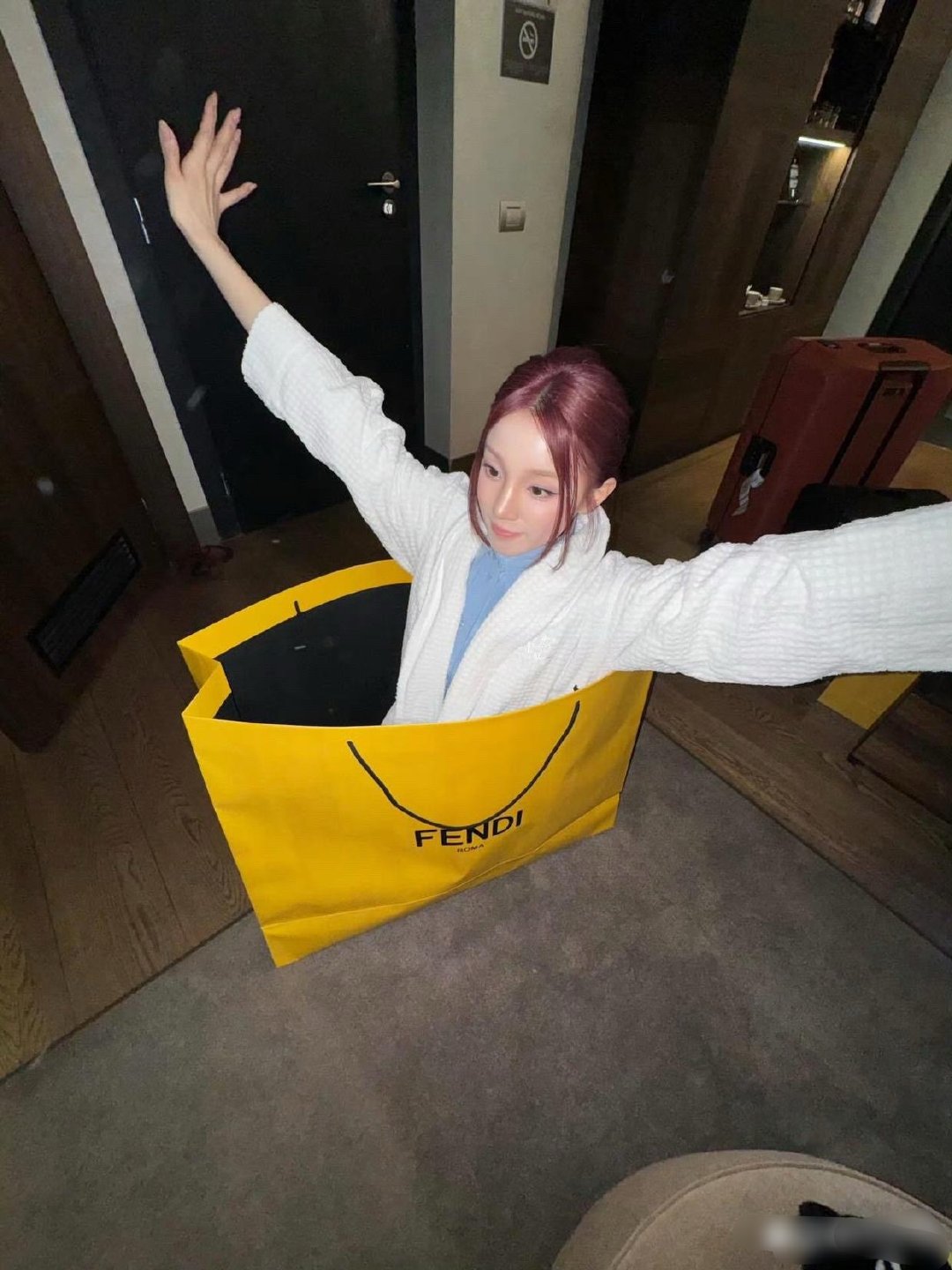 宋雨琦这么娇小的吗,直接把自己装进了购物袋里。话说回来,图一视角出片还挺吓人的。