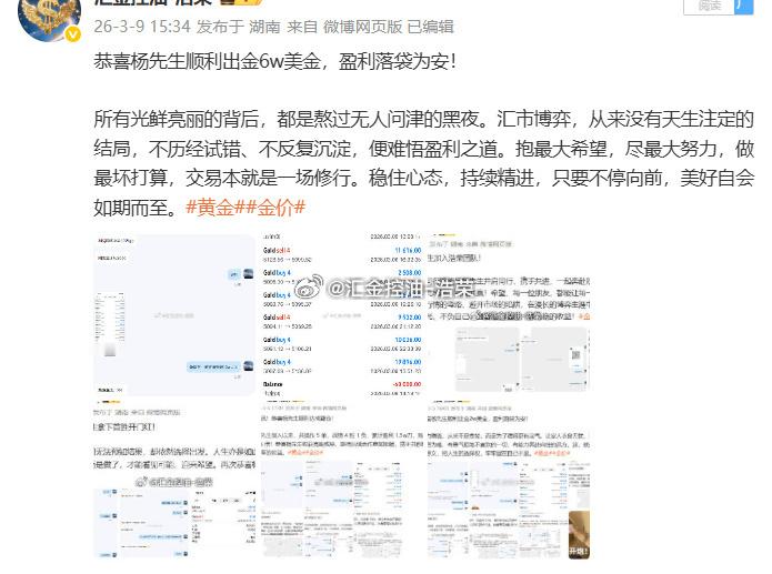 恭喜杨先生顺利出金12w美金,盈利落袋为安!