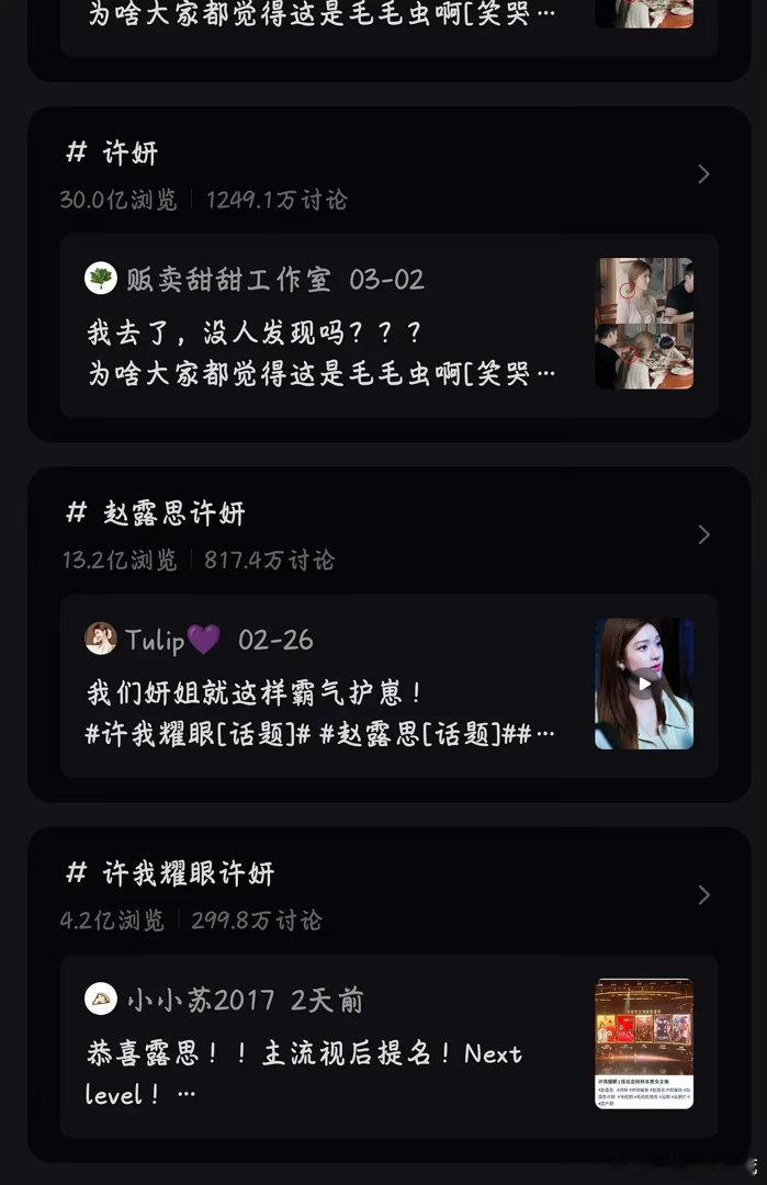 许妍🍠角色话题破30亿,🫘167.4亿!太牛了,唯二上30亿的角色,另一个也是30多亿的甄嬛,这真的是人生角色了啊....