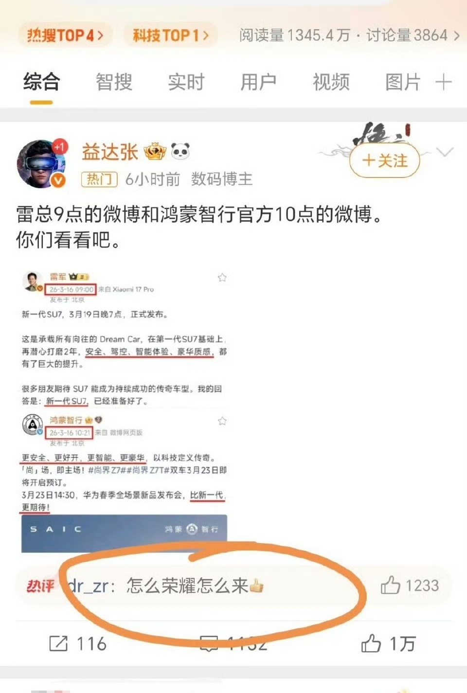 明明是鸿蒙智行 小米之间的争议,看个热闹也就算了,却有人偏偏把节奏带到了荣耀这里