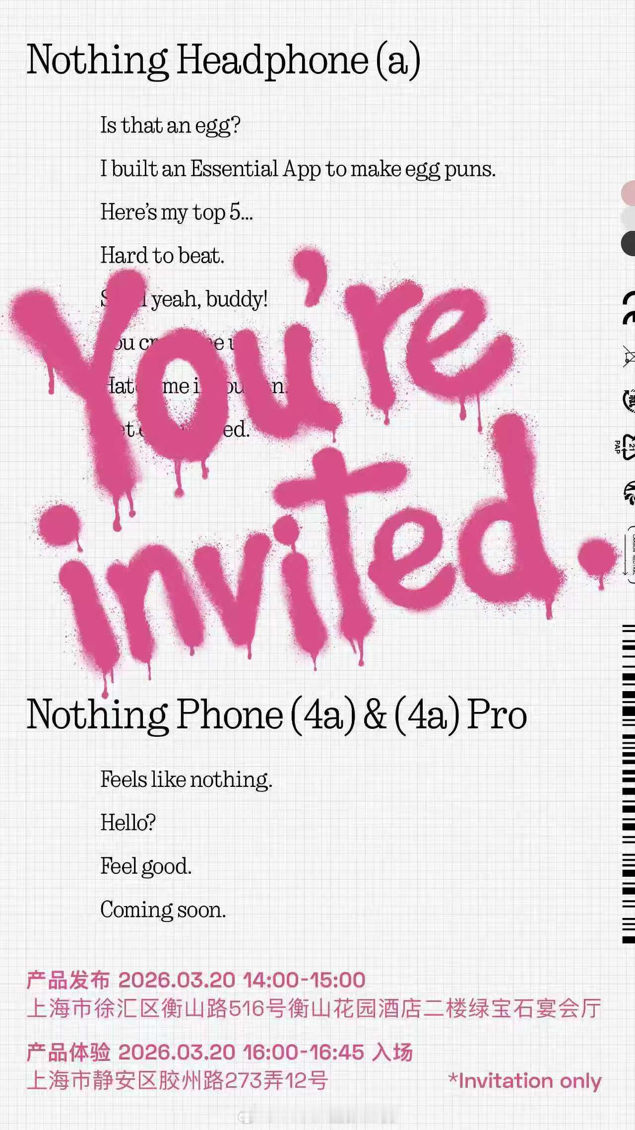 3 月 20 日·上海衡山花园酒店·Nothing 新品发布 & 新品体验