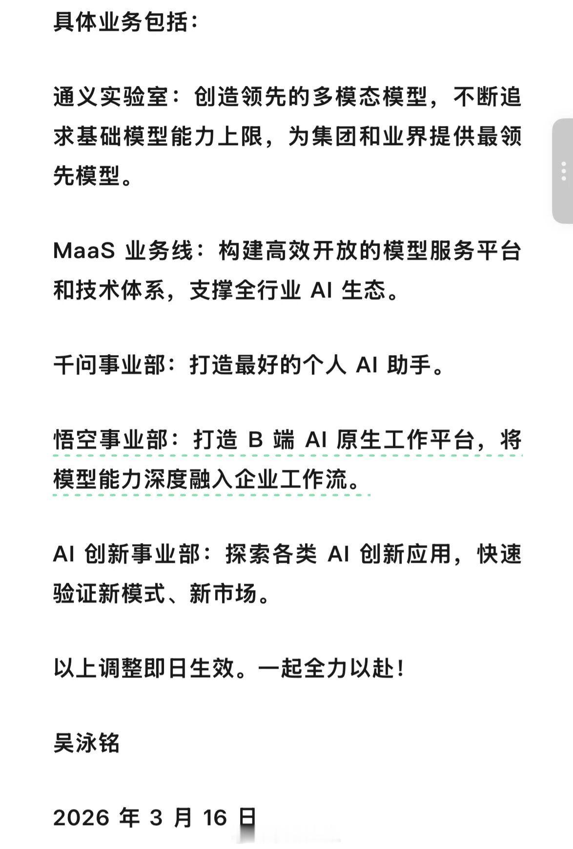 阿里巴巴正式成立 Alibaba Token Hub(ATH)事业群,由集团 CEO 吴泳铭直接负责,核心目标是“创造 Token、输送 Token、应用 Token”。