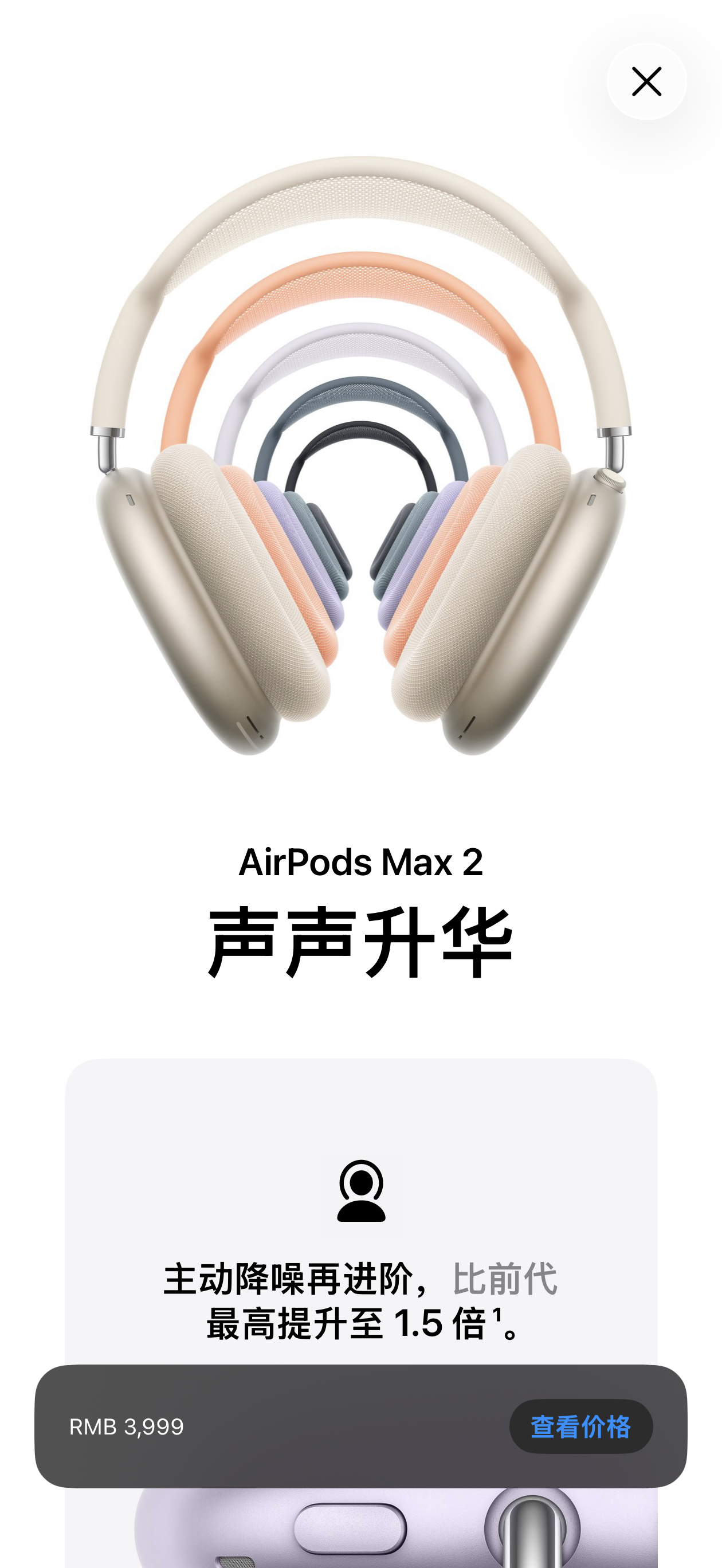 AirPods Max 2 提供午夜色、星光色、橙色、紫色和蓝色外观,售价依然是 3999,3 月 25 日起接受预购,下月初正式发售。