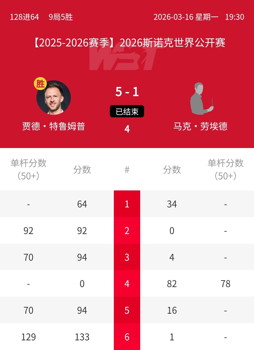 5-0、5-1,赵心童、特鲁姆普横扫冲冠,世界公开赛强势开局!刚刚结束的2026年斯诺克玉山世界公开赛第一个比赛日的2场焦点比赛中,新科世锦赛冠军赵心童、世界第一“准度王”贾德-特鲁姆普迎来火爆开局,他们以5-0和5-1的比分,轻松战胜外卡业余高手韩富源、马克-劳埃德。这两场比赛,由于对手实力一般,没有对其构成威胁,加之他们的发挥都很出色,最终兵不血刃强势晋级,并开启冲冠之旅。接下来的比赛,期待赵心童、特鲁姆普继续有出色发挥!赵心童 特鲁姆普[超话]