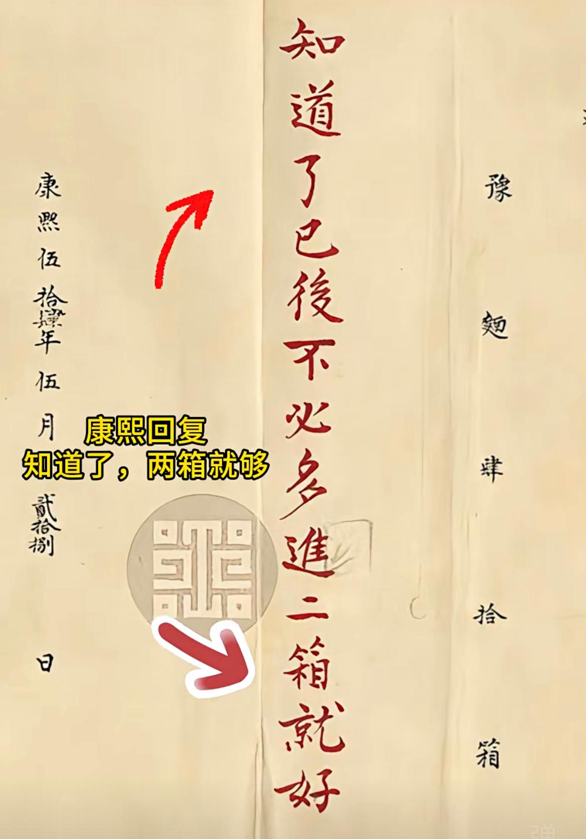 河南巡抚李锡给康熙帝进贡了40箱豫面,康熙帝回复:”知道了,以后不必多进,二箱就