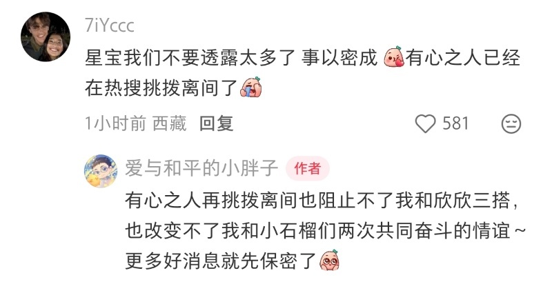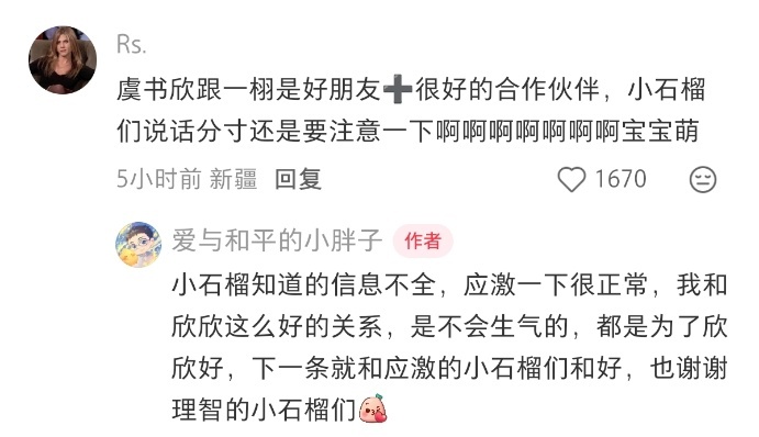 王一栩虞书欣演过最好的都是我给的 小胖子评论区和小石榴互动还挺有意思,🐟和wyx关系真不错,有新合作那就期待王一栩虞书欣 三搭