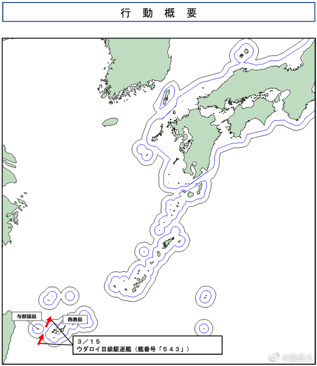 日本自卫队统合幕僚监部3月16日发布公告称,3月15日下午3时许,日本海上自卫队在冲绳与那国岛以南约70公里处海域,确认俄罗斯海军太平洋舰队沙波什尼科夫号护卫舰(舷号543)正在向东北方向航行。