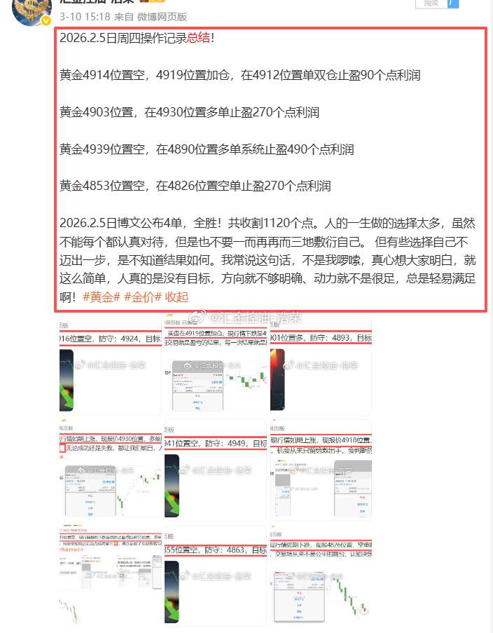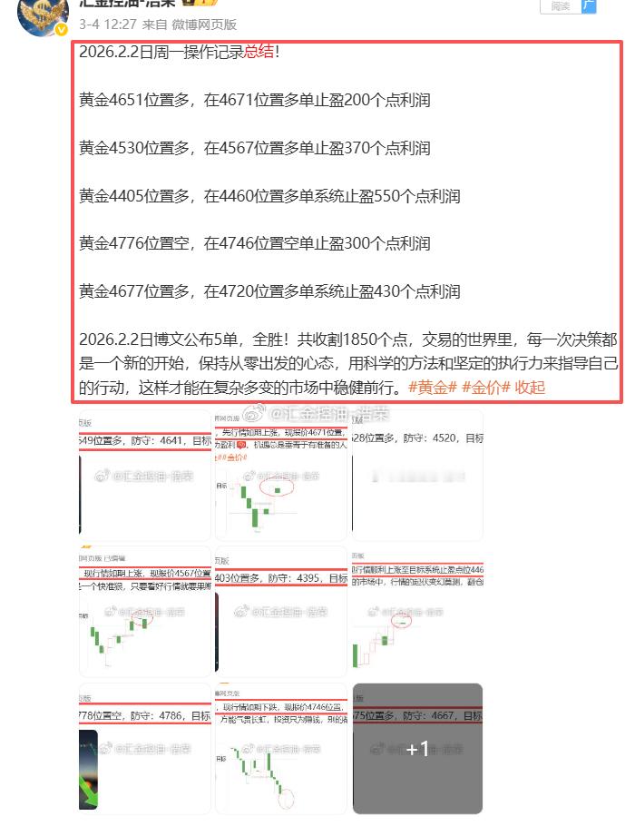 2026.2.5日周四操作4单,全胜,共斩获1120点利润网页链接