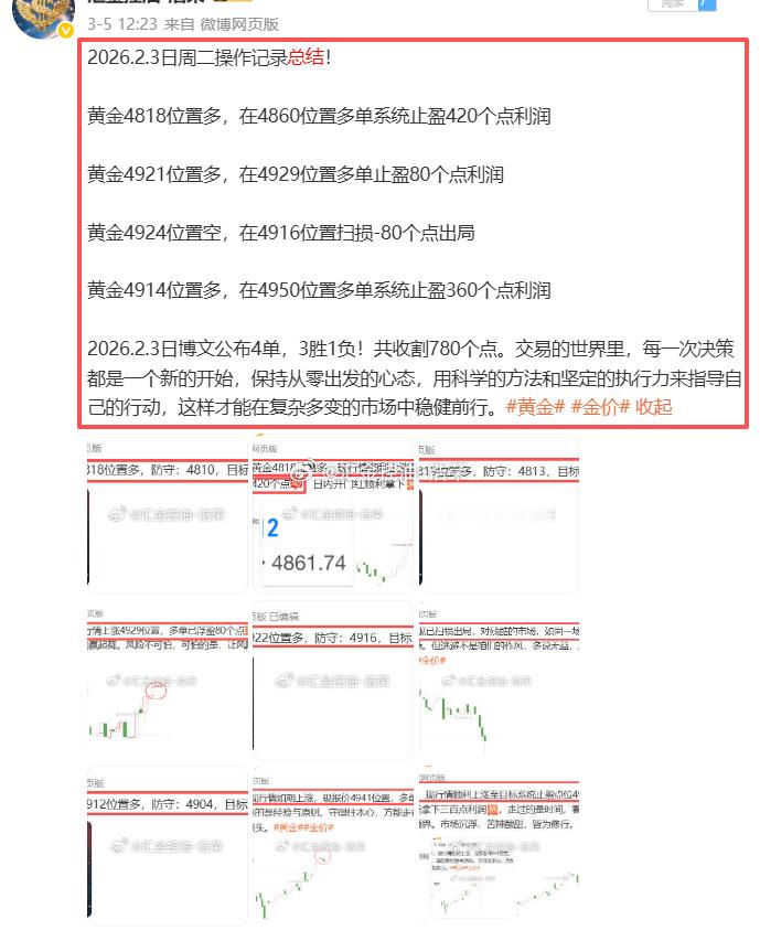 2026.2.3日周二操作4单,3胜1负,共斩获780点利润网页链接