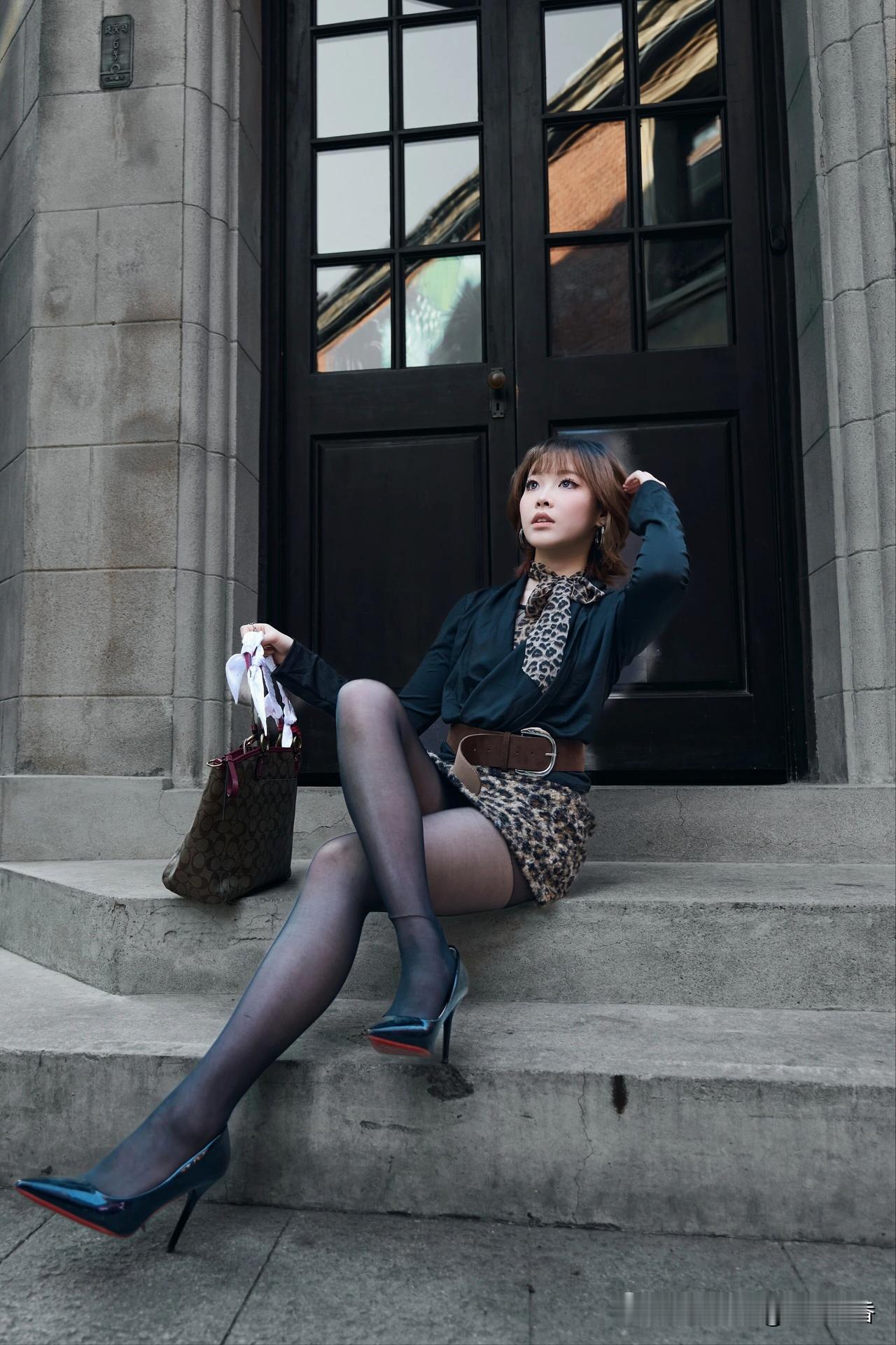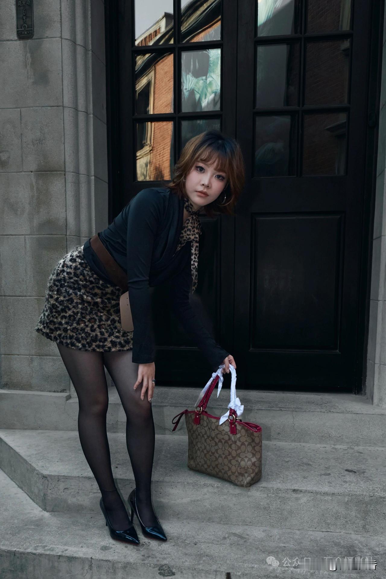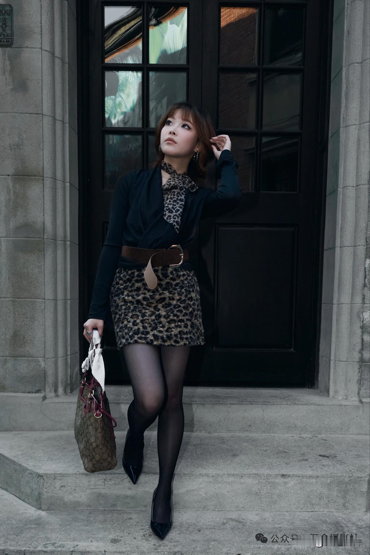 都市雅痞风,黑裙与豹纹的完美碰撞,时尚感爆棚!