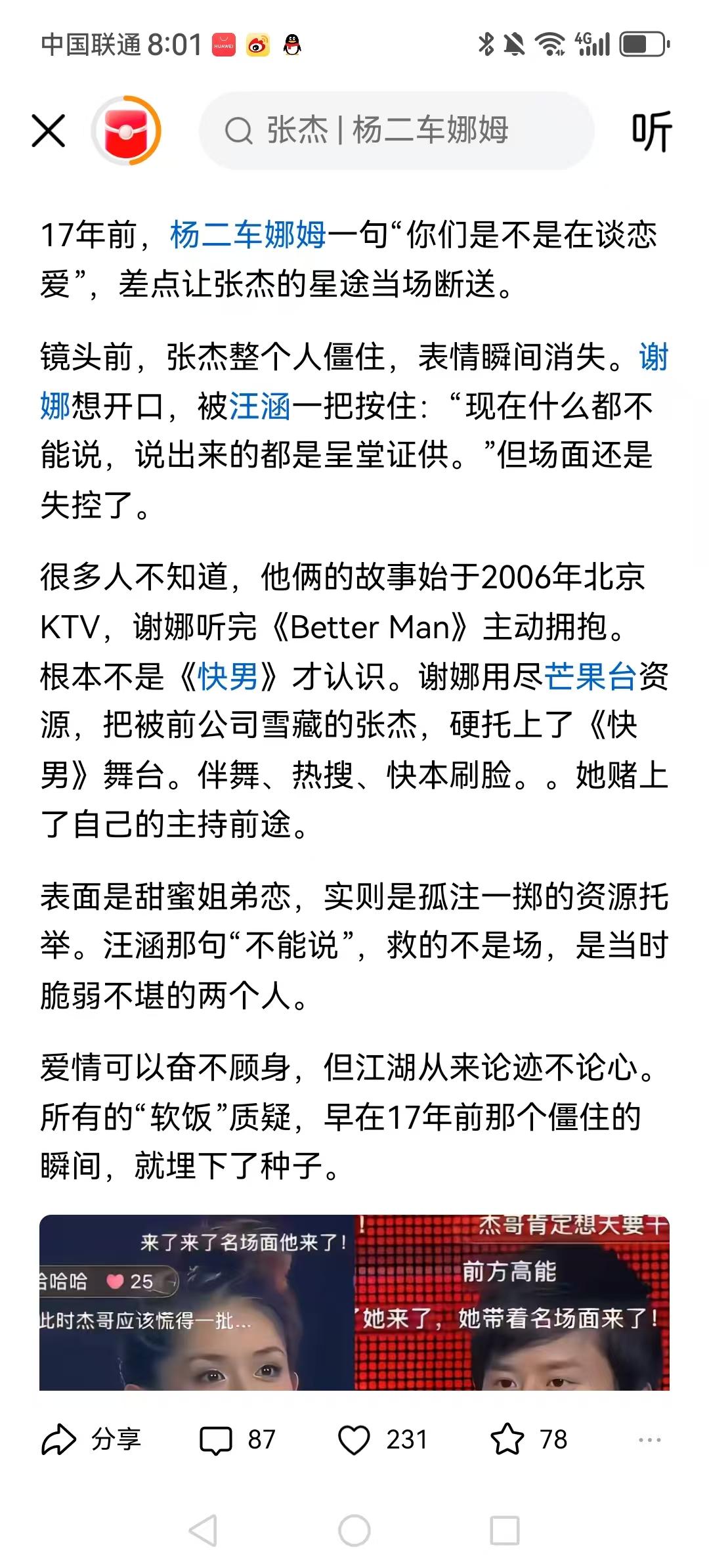 吃软饭就是吃软饭,他厉害在,一碗软饭没吃完,能立马衔接上下一碗软饭。那个时候看快男特别喜欢杨二车娜姆的点评,真是一针见血啊。 张杰的声音总觉得怪怪的,虽然音域很广,但是不好听。 这也叫老天爷赏饭吃,不过是软饭。当时还没分手,现场的要宣示主权,正常操作。杰不吭声,娜就知道这把稳了。后来就挨巴掌了,就彻底两人焊死了。 谢娜与刘烨分手,刘烨也被网暴好几年,那个女人从来没喜欢过。 张杰长的那个样,能让俩女人为他赴汤蹈火,也真是本事。就我觉得她俩不像两口子吗?生了孩子也不像。