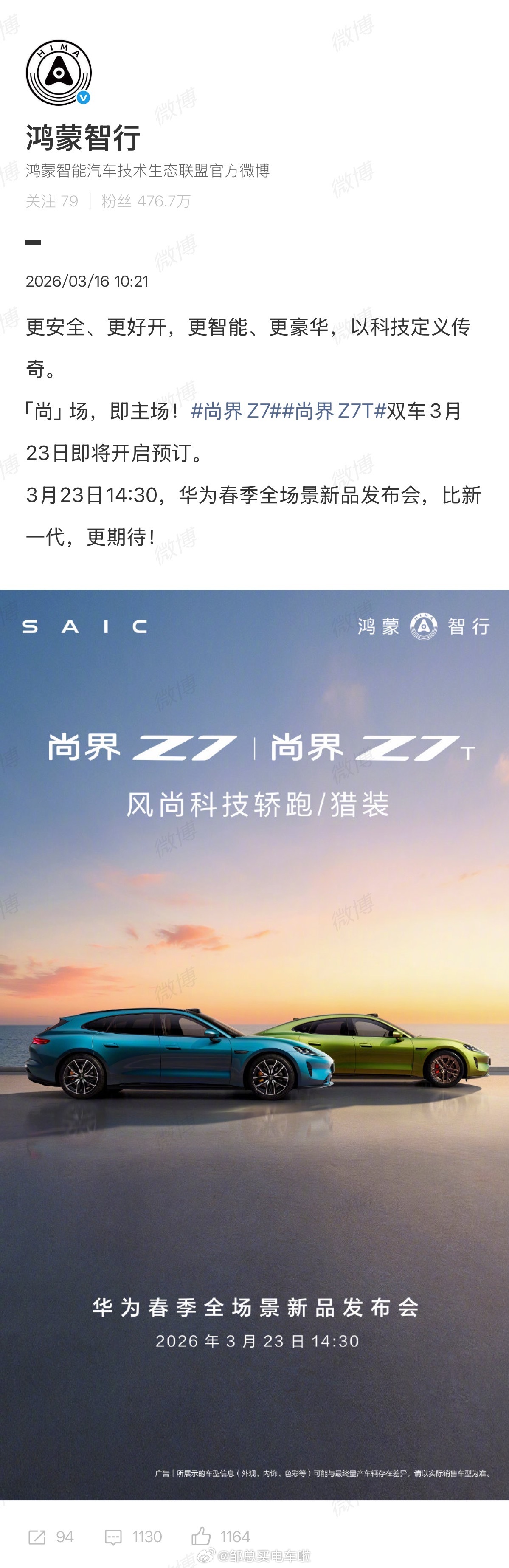 邹总买电车啦新一代su7尚界z7