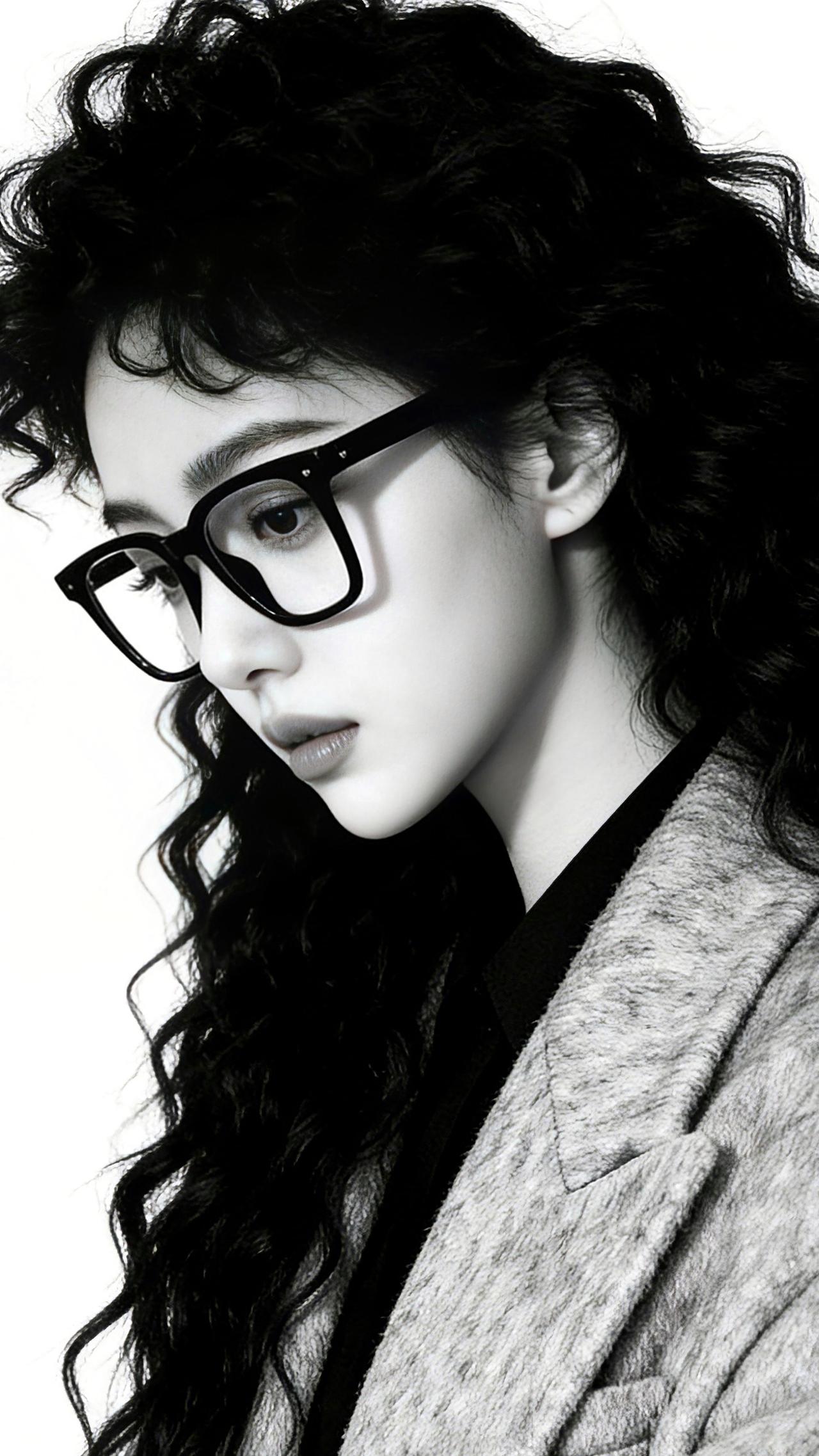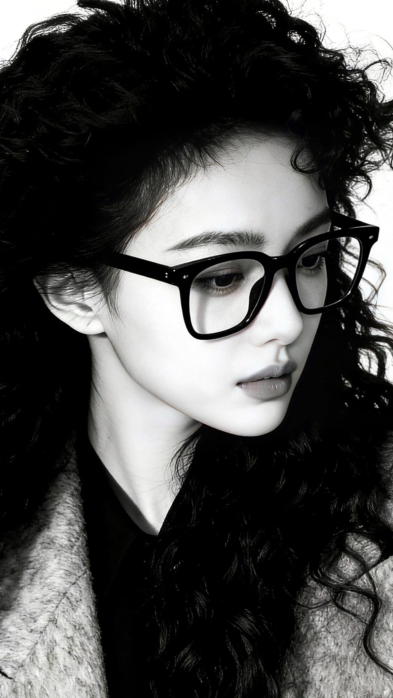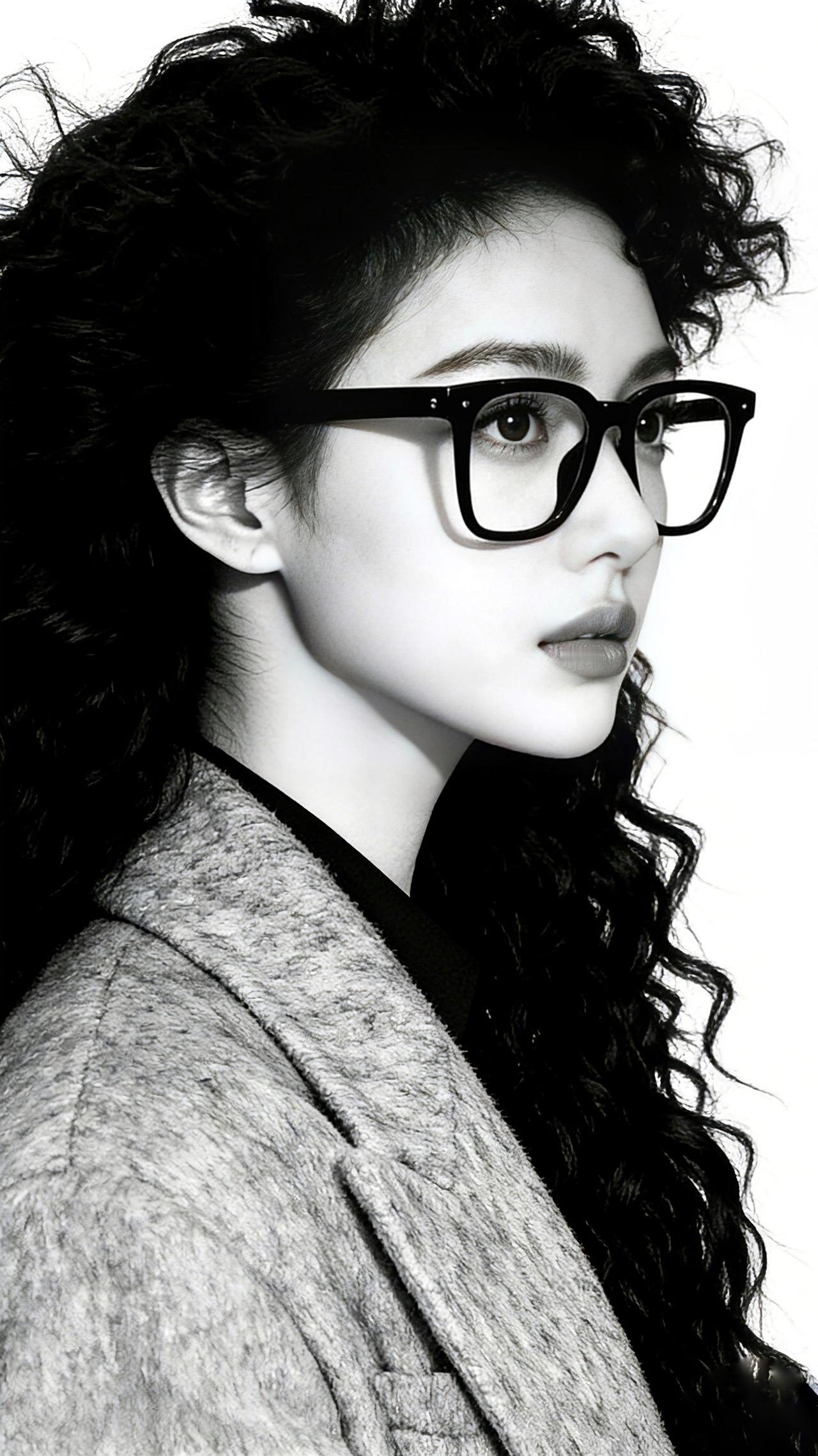 九帧同绘知性卷发仙。黑框眼镜添书卷气,卷发如瀑流光垂肩,灰呢外套衬玉骨。纯白背景