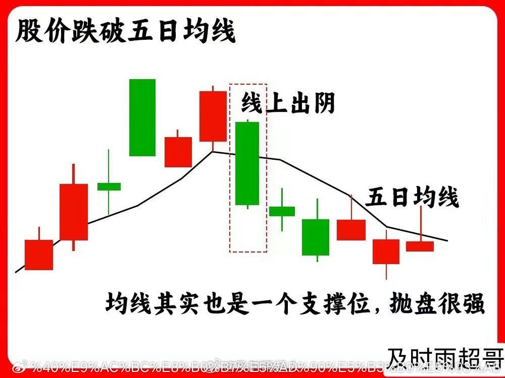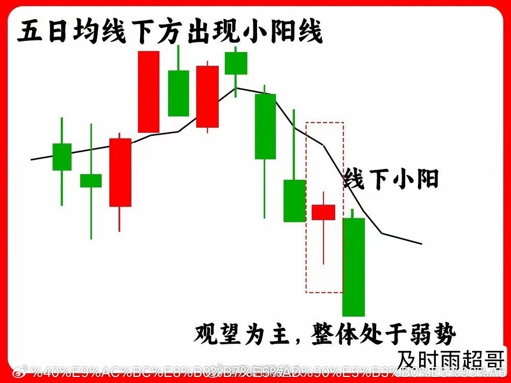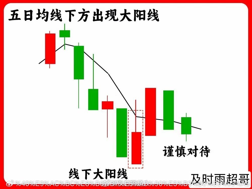 注意了!作为短线选手,五日均线肯定少不了,那怎么判断五日均线是否强势呢?今天一期内容全部告诉你,我总了六种五日均线的形态。短线选手一定要认真看完还是老规矩,点赞收藏或评论六六六支持一下,我每天分享炒股干货,以免以后想温习找不到了一、5 日均线下方出现大阳线五日均线向下,处于一个短期下跌趋势,出现大阳线,说明此时股价可能出现止跌,但是只是股价反弹,趋势并没有改变,那就要谨慎二、5 日均线拐头向上五日均线开始走平,到开始向上,说明连续的阳线出现,抬高了股价,有主力开始动作。三、5 日均线拐头向下五日均线从向上到走平,再到向下,说明短期趋势强转弱,五日平均成本在开始降低,此时短期趋势进入一个下跌趋势里四、5 日均线下方出现小阳线五日均线向下,在均线下方,出现小阳线,实体部分很小,说明多方力量现在不强,只能说明抛压变小,但是也没有力量拉升股价五、股价跌破 5 日均线在上涨趋势里,五日均线在股价下方运行,突然股价跌破了五日均线,说明抛压比较大,而且短期阶段,五日均线就是一个比较重要支撑位六、5 日均线上方出现大阴线在上涨趋势里,股价出现大阴线,但是股价没有跌破五日均线,说明此时是主力强势洗盘,属于一种强分歧,那次日的表现就很重要。好了!以上就五日均线常见的六种形态。希望对大家有启发,也是最为基础的内容,一定吃透。