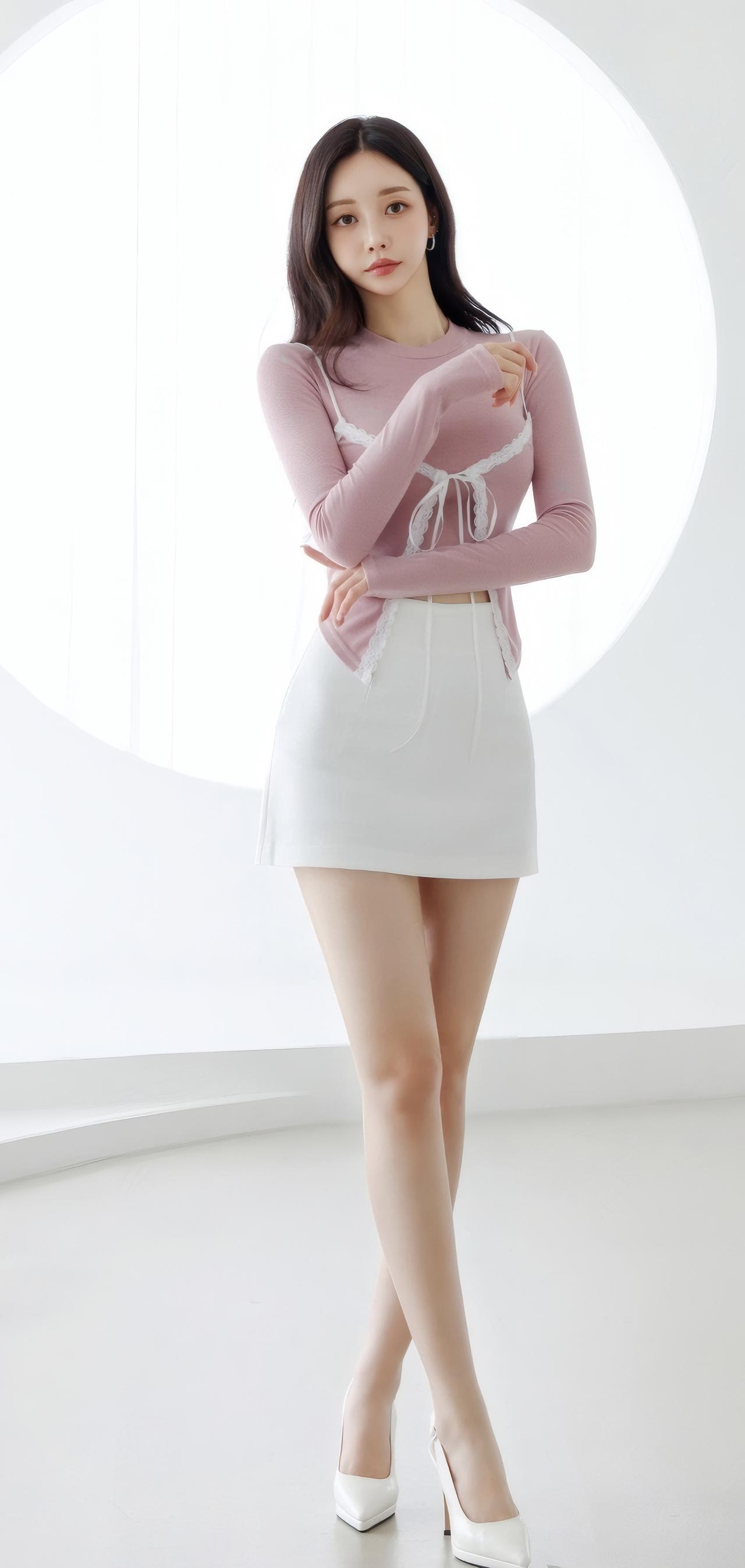 温柔粉色毛衣搭配白色短裙,甜美又优雅!💕