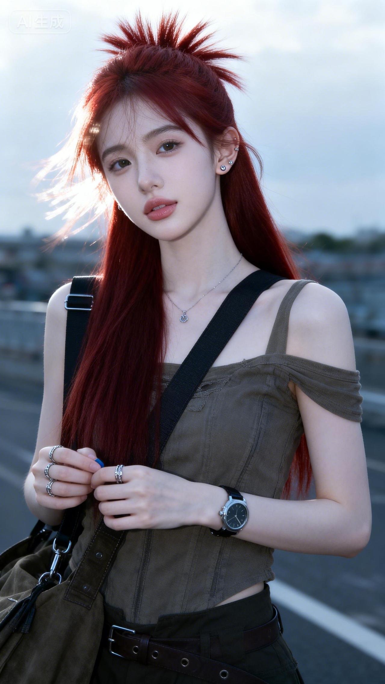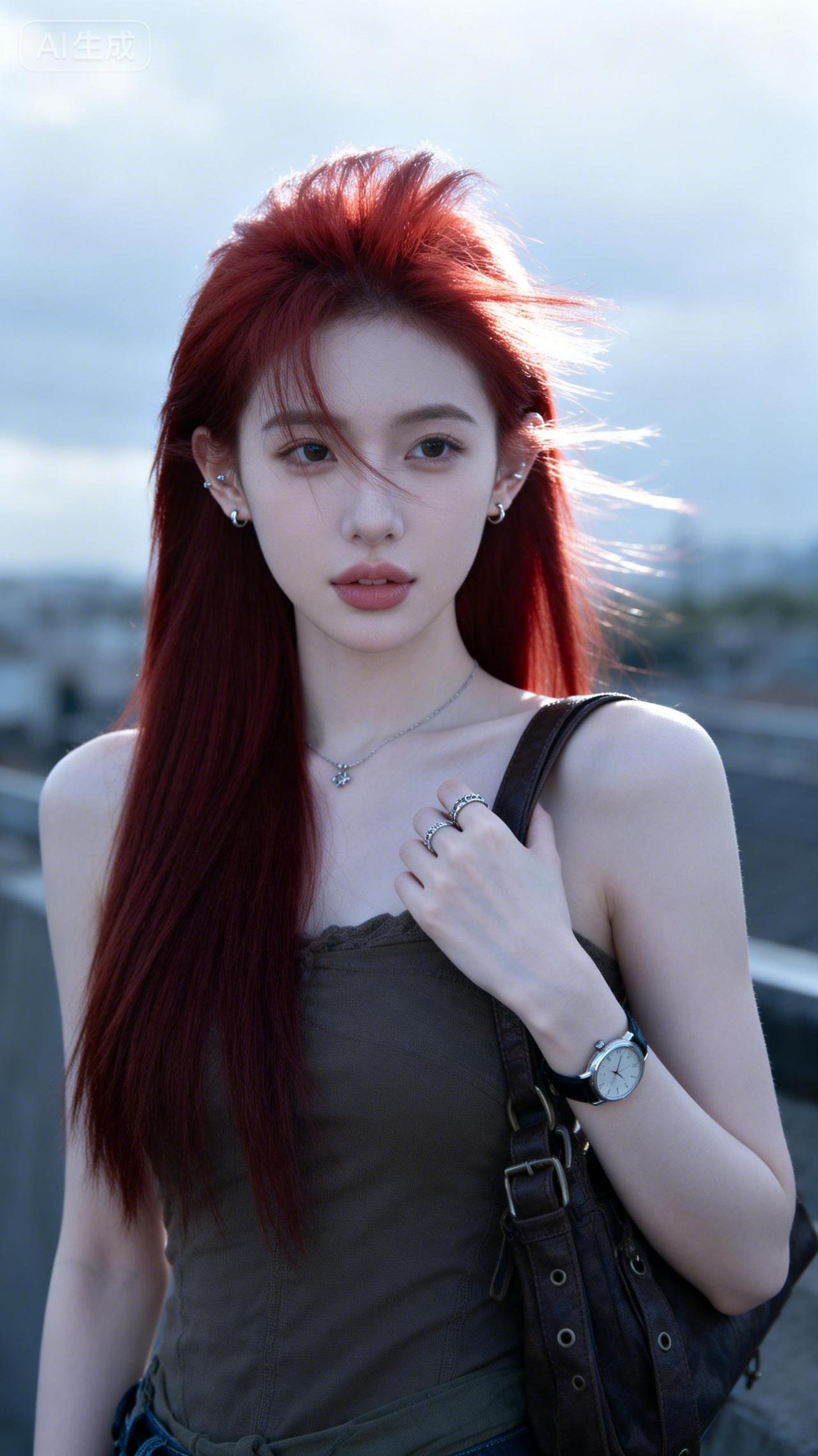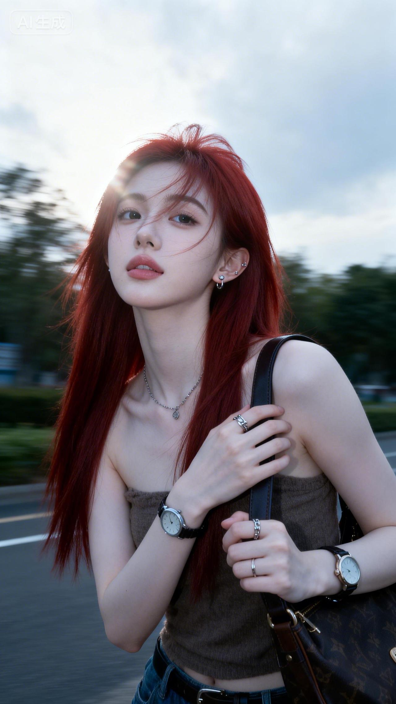樱花树下,少女轻抚发梢,春意盎然。