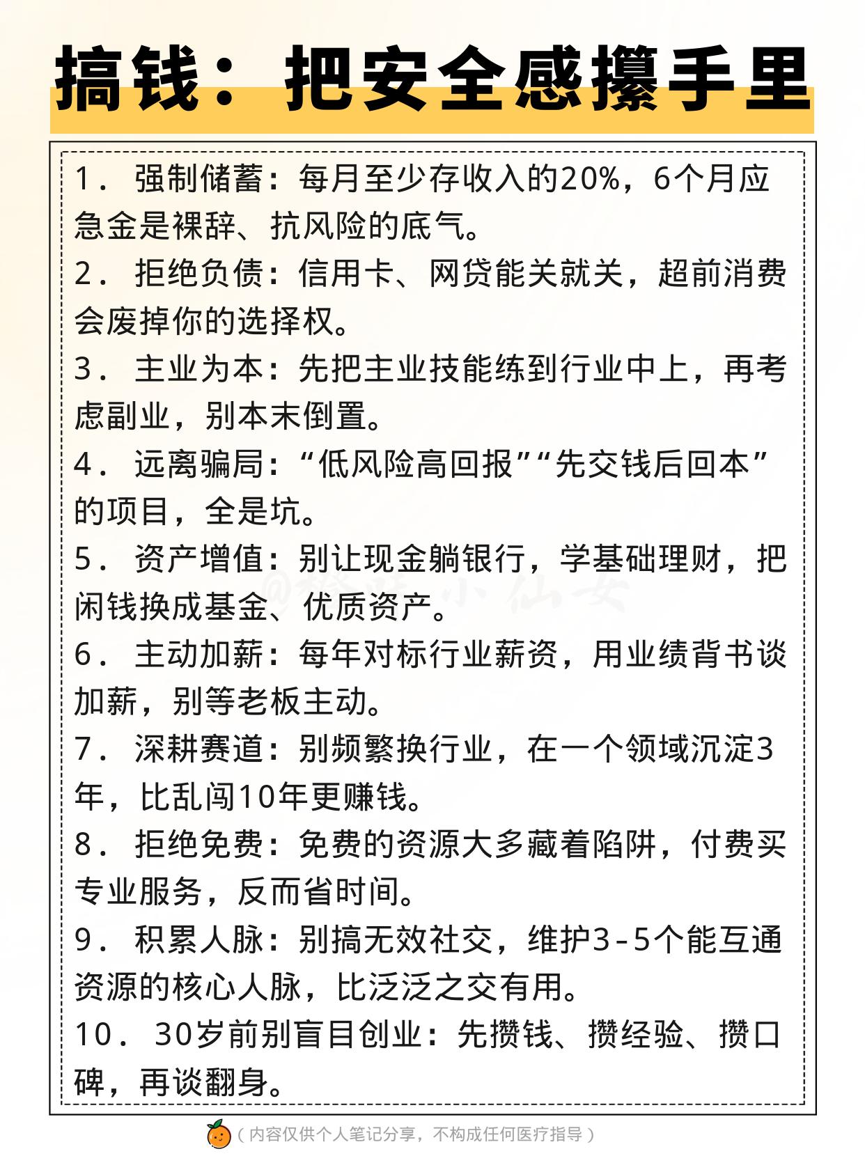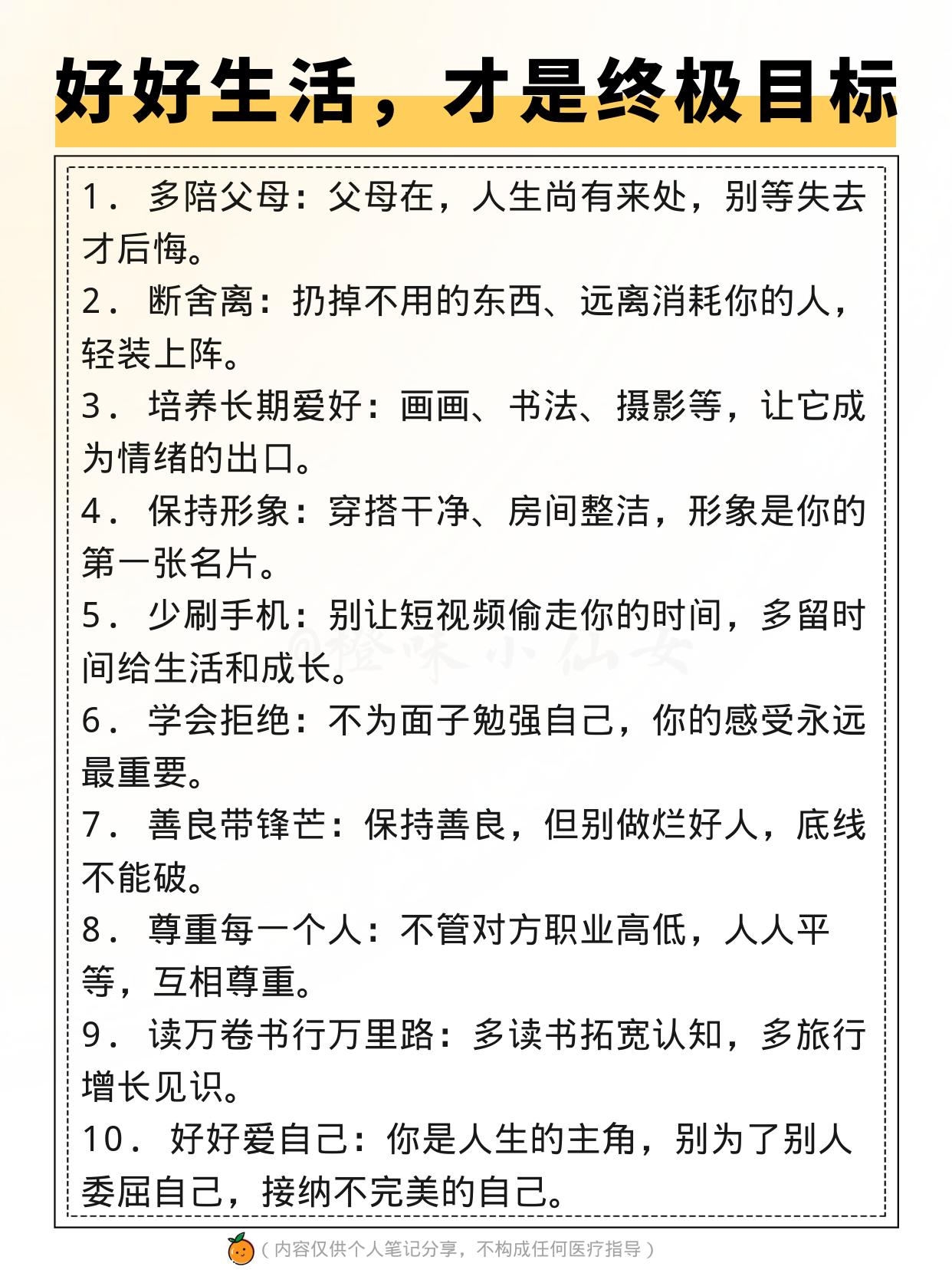 未来5年,靠这50条忠告少走弯路✅ 未来5年,没有捷径可走,却有很多弯路能避。 ✅守住健康 ✅攒够底气 ✅持续成长 不用贪多,每天践行1条,慢慢积累, 你会发现,生活正在悄悄变好。 🌈 愿你在复杂的世界里, 活得清醒、坚定、有力量, 既能扛住风雨,也能享受生活。
