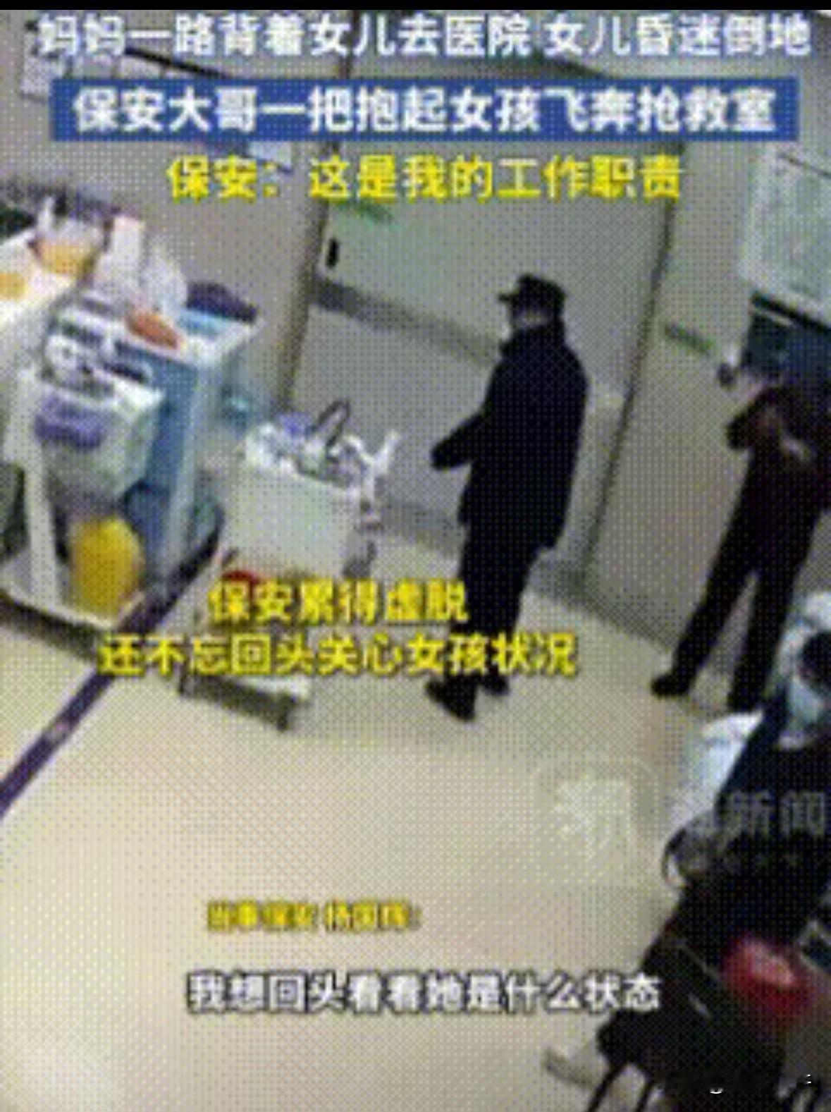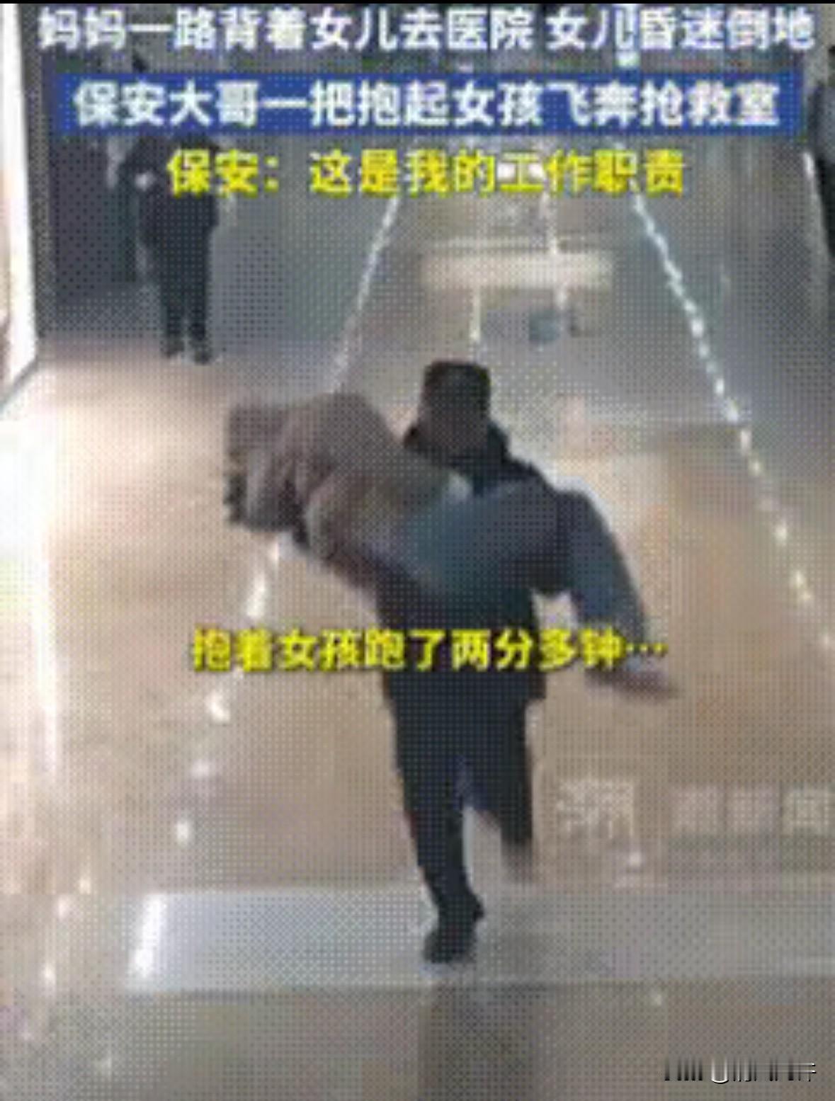 这个保安火了!近日,一位母亲背着昏迷不醒的女孩呼哧带喘地进了医院大门,就在刚跑进大门一瞬间,这位母亲累得顿时跌倒了,背上的女孩也摔倒在地。 事发在2025年3月14日早上七点多,浙江大学医学院附属邵逸夫医院钱塘院区门诊入口,这名保安是来自甘肃武山的杨国辉,他当时正在固定岗位值守,眼前的突发状况让他来不及做任何思考。 他放下手中的执勤记录,快步冲到母女身边,俯身触碰女孩的身体,能清晰感受到女孩意识全无,浑身绵软没有任何自主反应,一旁的母亲瘫坐在地面,情绪接近崩溃,连起身的力气都没有,只能反复发出微弱的求助声。 杨国辉在医院从事安保工作已有两年多,见过太多急症患者的紧急状况,他深知昏迷孩童的救治容不得半分耽搁。 他没有多余的言语交流,直接俯身将女孩平稳抱起,调整好支撑的姿势,确保女孩身体不会在移动中受到二次磕碰,随即朝着急诊抢救室的方向快速行进。门诊区域人流量较大,他一边稳步前行,一边提醒周围人员避让,全程保持稳定的速度,没有丝毫停顿。 从门诊入口到急诊抢救室的距离超过一百米,需要穿过多条通道,杨国辉的体力在持续行进中不断消耗,呼吸逐渐变得急促,额头渗出汗水,却始终没有放慢脚步。 他心里只有一个清晰的目标,就是尽快把孩子送到医护人员手中,为后续救治争取更多时间。他个子不算高大,抱起女孩的过程并不轻松,身体的疲累感不断袭来,可救人心切的念头支撑着他完成这段关键的奔跑。 短短两分钟时间,他顺利抵达抢救室门口,提前接到讯息的医护人员早已在门口等候接应。 他小心地将女孩转移到医用平车上,配合完成交接流程,确认女孩被送入抢救区域接受专业救治后,才退到一旁调整状态。他扶着墙面平复急促的呼吸,缓解身体的疲累,没有向在场的人索要感谢,也没有停留打听后续情况,简单调整后便默默回到自己的值守岗位,继续完成日常的安保工作。 女孩的母亲情绪稳定后,四处寻找出手相助的保安,想要当面表达感激。 她找到杨国辉时,反复向他鞠躬致谢,泪水止不住地滑落,言语间满是对孩子的担忧与对杨国辉的感激。杨国辉只是温和地安抚对方,让她安心等待孩子的救治结果,他坦言这是自己应该做的事,任何身处这个岗位的人,遇到这样的情况都会做出同样的选择。 医院的监控记录下了完整的救援过程,视频被发布到网络后,迅速引发全网关注与点赞,千万网友被这一幕深深打动,大家纷纷称赞杨国辉是平凡岗位上的英雄,是最暖心的普通人。 面对突如其来的赞誉与关注,杨国辉始终保持低调质朴的态度,接受采访时他依旧腼腆,反复强调自己只是做了本职范围内的小事,不值得过多宣扬。 杨国辉的成长经历让他格外懂得共情他人的难处,他从小家境普通,深知生活与困境中的无助,这份经历让他养成了热心友善、乐于助人的性格。在日常工作中,他总是主动帮助有需要的患者与家属,帮忙搀扶老人、指引路线、搬运物品,这些微小的善举,他坚持了一天又一天,从未有过懈怠。 这次紧急救援,不过是他日常工作中的一个普通片段。 他用本能的反应,为陌生女孩抢回了宝贵的救治时间,用朴实的行动,诠释了普通人的责任与担当。他没有耀眼的身份,没有丰厚的收入,却在生死瞬间挺身而出,用最直接的方式守护生命,这份藏在平凡里的勇敢与善良,比任何华丽的辞藻都更有力量。 平凡的岗位从不会限制善意的绽放,普通的身份也挡不住担当的光芒。杨国辉用一次义无反顾的奔跑,让更多人看到了普通人身上的温暖与力量,这份不图回报的善意,正是社会最珍贵的底色。 各位读者你们怎么看?欢迎在评论区讨论。