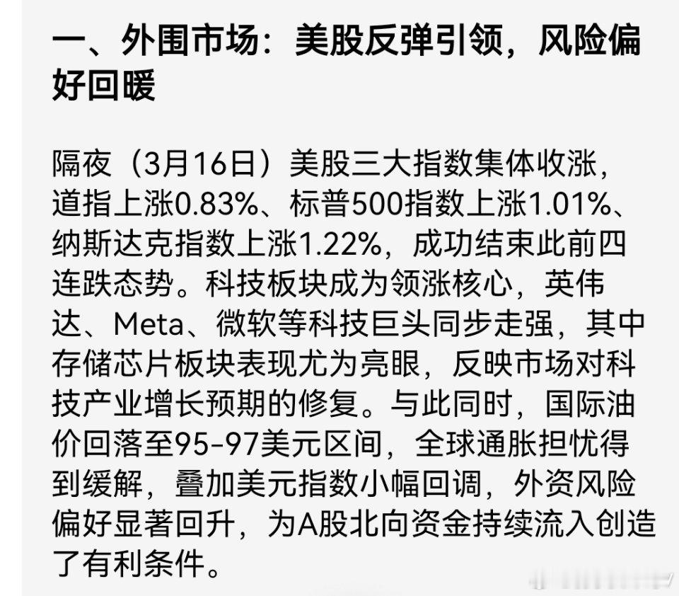 美股大涨+经济超预期,A股迎反弹窗口在全球市场风险偏好修复与国内经济动能超预期共振下,A股已迎来明确反弹窗口。外围美股止跌回升奠定情绪基础,国内经济数据、政策支持与产业催化形成三重支撑,市场结构性机会正加速显现。