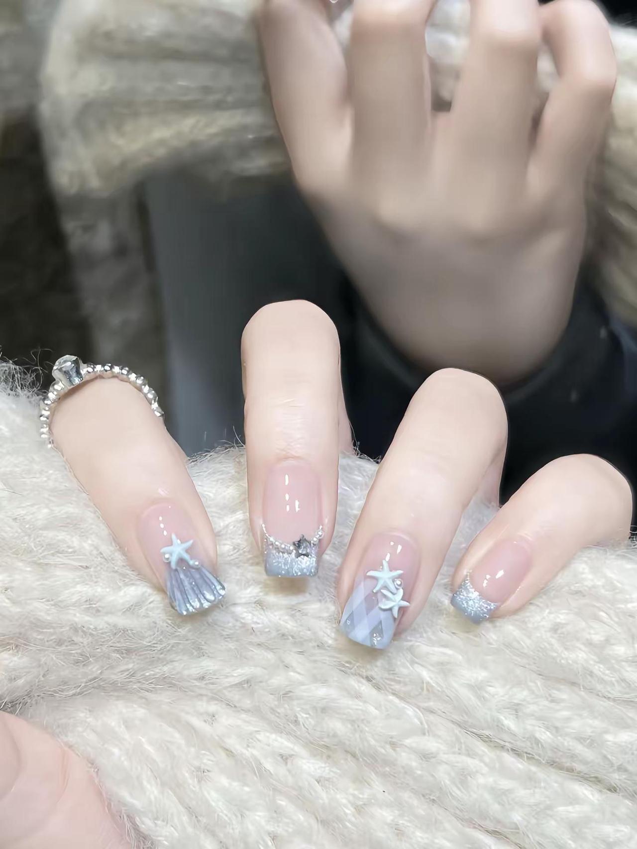 夏日蓝色海洋海星美甲。海洋美甲来啦海洋美甲 格纹美甲 猫眼美甲 秀出我的超绝美甲