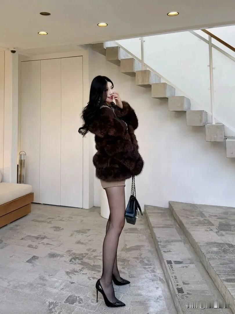 优雅黑丝与奢华皮草的完美结合,尽显都市女性魅力!双色搭配的设计要怎么穿才更好看?