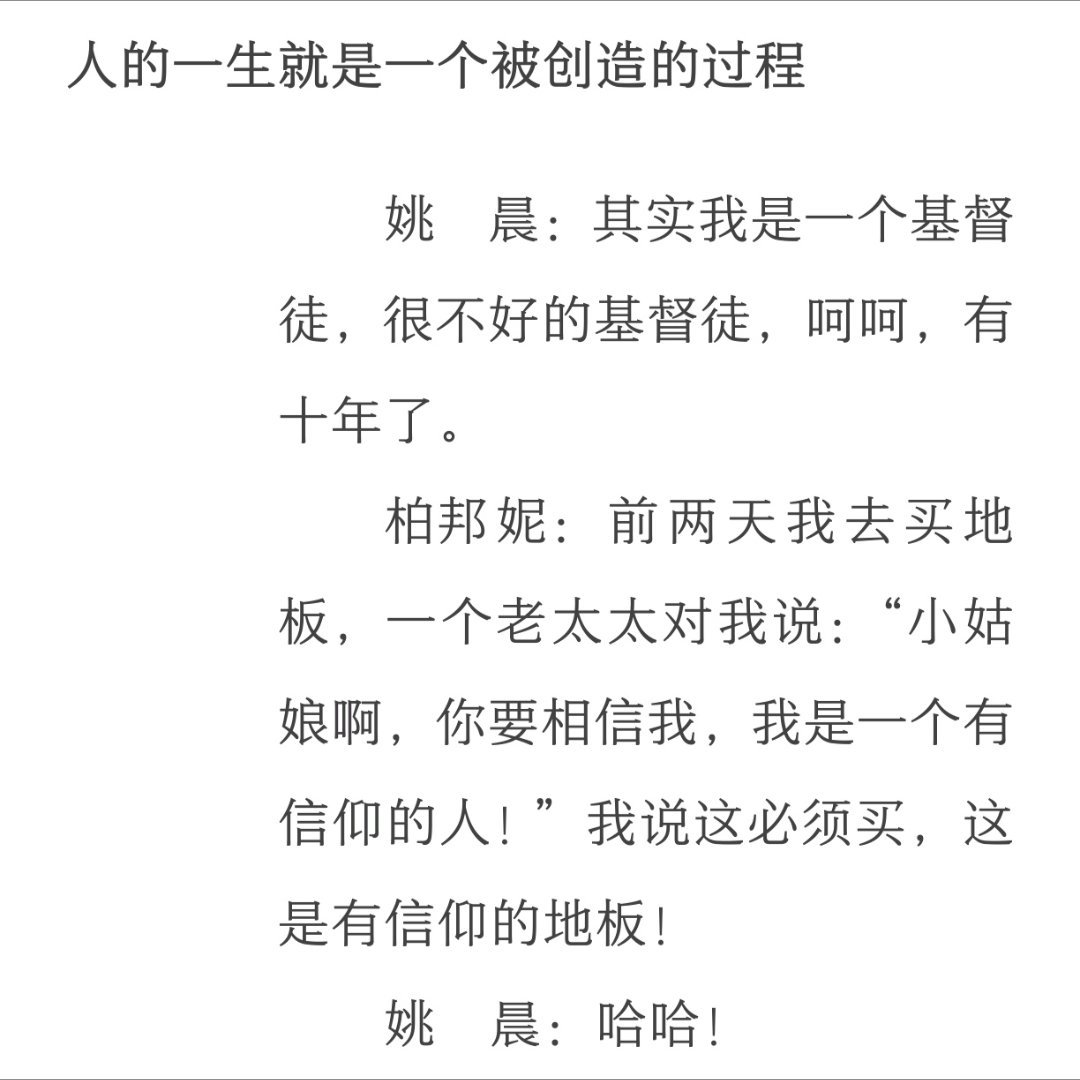 出自著名编剧、媒体人柏邦妮的访谈录。很难想访谈里的人她现在居然要拍妈祖短剧。