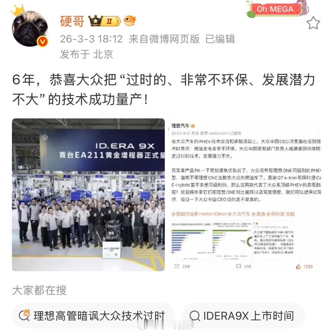 多车企高管隔空聊增程昨天车圈特别热闹,大众和日产在同一天聊增程,理想高管还来了一波“回忆杀”。6年前被大众高管痛批“过时、最环保”的技术,现在大众自己下场做了,还说了句“做增程永远都不晚”。日产那边更直接,感谢理想把增程市场做大了,让他们“站在了更高的起点上”。