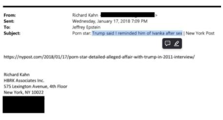 其实,伊万卡和特朗普之间的乱伦事情传了很久了。   美国司法部公开的爱泼斯坦案最