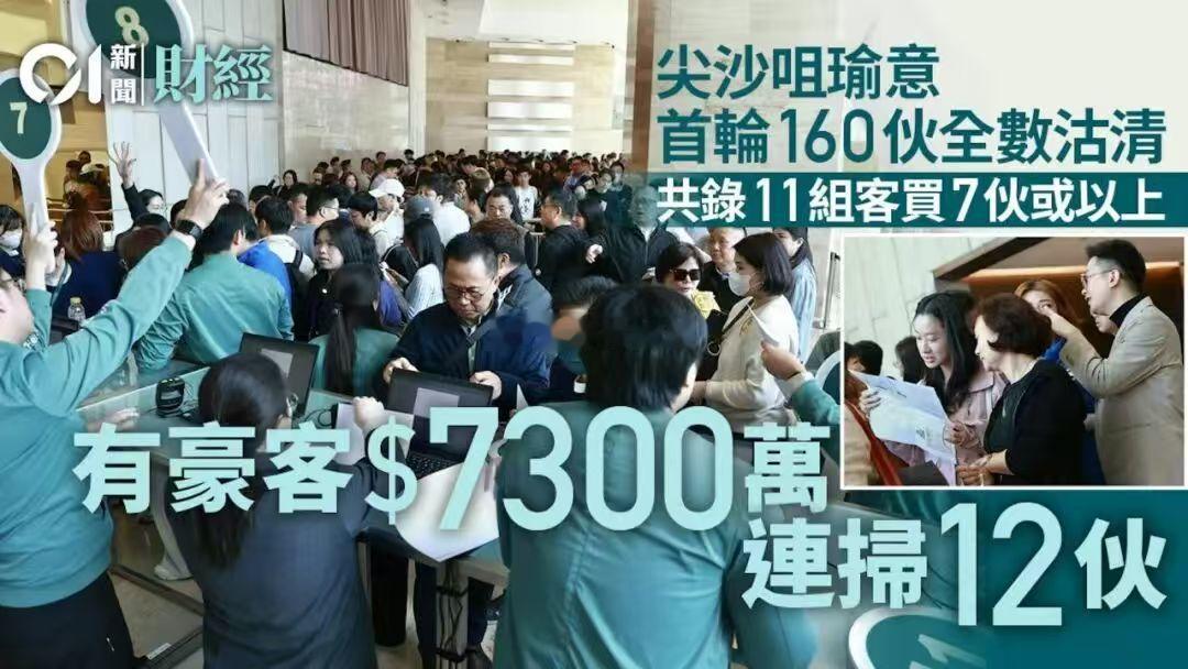 就在刚过去的周末,香港两大新盘开盘即遭“秒光”,带动全港新盘成交量环比暴涨超4倍。有位于尖沙咀的楼盘,出现豪掷7300万连扫12户的大手笔交易。