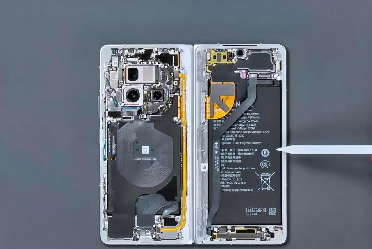 荣耀Magic V6被拆机了,黑子们可以闭嘴了。 前几天看到有人杠荣耀Magic V6,说"两块电芯加起来才7150mAh"——我直接一个问号❓ 折叠屏用双电芯不是基操吗? 怎么到你这儿就成槽点了?照这逻辑,新能源车也没见谁把电池包里塞了多少个电芯贴脑门上卖啊,不都是看总容量和续航? 结果有大V真把机子拆了,好家伙,发现荣耀藏了不少狠活儿——电池仓直接占了整机体积的27%,这什么概念?折叠屏寸土寸金,荣耀硬是在里面塞下了接近三成的电池空间。 说白了,这就是堆料的艺术。不是简单塞两块电池进去,是怎么在铰链、主板、散热的夹缝里,把空间压榨到极致。这波啊,这波是设计功底藏不住了。 那些拿双电芯说事的,建议先了解一下折叠屏的内部结构再来喷。
