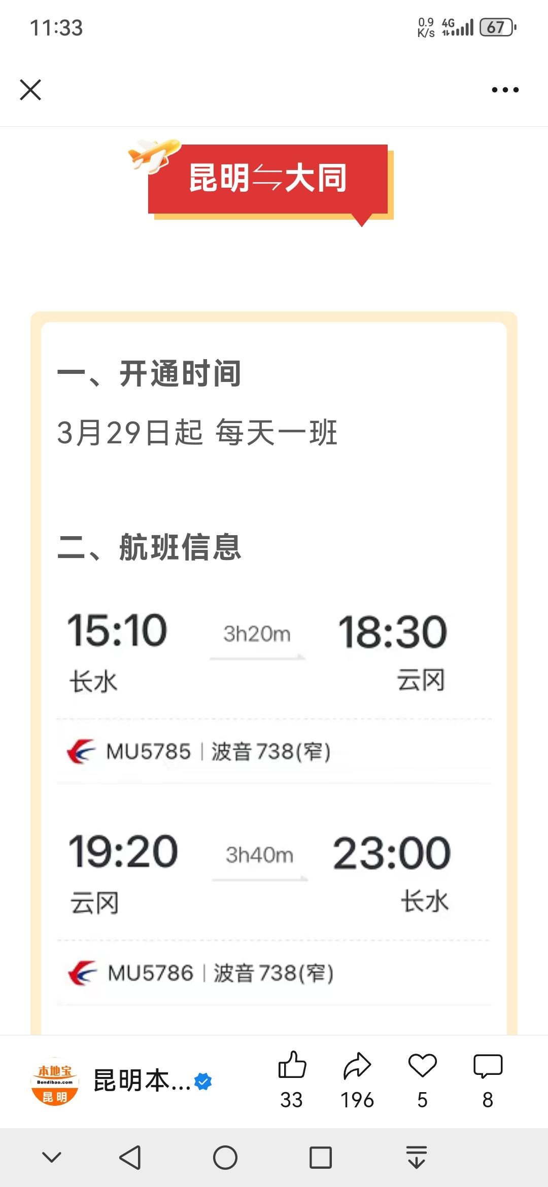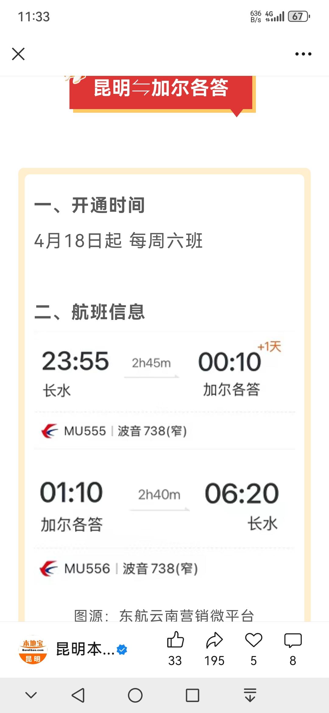 🛫🛫🛫昆明航空又有新动态!新开两条直飞🛬🛬航线 2026年4月18日,昆明至印度加尔各答航线将恢复运营,由东方航空执飞。直飞航程约2小时45分钟,每周6班,昆明-加尔各答航班号MU555,加尔各答 - 昆明航班号MU556。加尔各答是印度西孟加拉邦首府,还是泰戈尔的故乡,航线恢复后,对两地经贸、文化旅游和人员往来都有很大助力。 另外,昆明还将新开至大同的直飞航线。这两条新航线,无论是想去感受印度文化,还是去山西大同领略古迹风采,都方便多了。而且云南机场集团还会优化中转服务,出行体验更顺畅。 机场