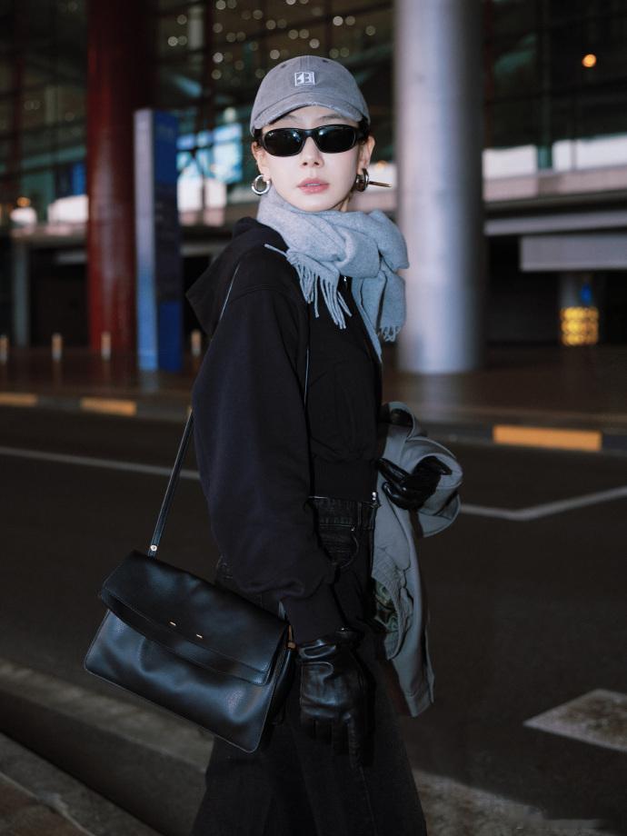 戚薇戴了皮手套 她戴皮手套那个细节太会了,本来全黑造型就够酷,手套一加上直接气场翻倍,走路带风的样子谁看了不想喊一声戚总好。