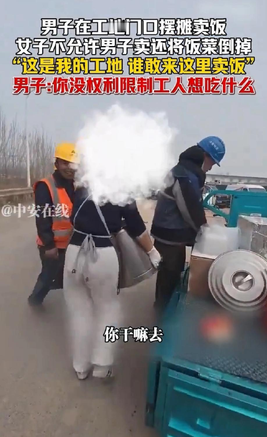 “赤裸裸的摊霸!”山东,一男子来到某工地门口摆摊卖饭,因为饭菜不错,价格也实惠,很快,吸引来不少工人买饭。一旁摆摊卖饭的女子看到男子抢了她的生意,直接冲过来抢走男子的饭菜,全部倒掉,还叫嚣着这是我的工地,谁敢来这里卖饭?男子很无语:女子有权利限制工人们想吃什么,凭什么倒掉他辛辛苦苦做的饭菜! 男子老李是个实在人,平时靠摆摊卖饭挣点辛苦钱。 看到附近有个工地开工了,老李瞅准了商机,特意准备了满满一车饭菜,打算到工地门口摆摊。 老李想着工地上的工人们干的是体力活,得让他们吃好吃饱,所以特意多做了几个菜,有红烧肉、炒豆芽,还有一大锅热乎乎的西红柿蛋汤。 虽然都是家常菜,但每样菜他都用心调味,价格实惠,分量还给得足足的,特别符合农民工的需求。 果然,没一会儿,工地里陆续出来吃午饭的工人们就被老李的饭菜香味吸引过来了。 老李赶紧招呼:师傅们,现做的盒饭,十块钱管饱,不够再加。 工人们一看,菜色不错,闻着也香,价格还实惠,比旁边那家便宜,就都围了过来。 “这肉炖得烂,味道真好!”“十块钱能吃这么饱,太值了!”工人们边吃边夸,老李听着心里美滋滋的,一边盛饭一边笑的合不拢嘴。 可老李没注意到,就在离他不远的地方,有个摆摊卖饭的女人一直盯着他这边。 那女人在这儿摆摊有些日子了,平时就她一家,工人们没得选,只能买她的。今天老李一来,她的摊前冷冷清清,一个人都没有。 女人看着老李那边热热闹闹的,工人们吃得满脸高兴,心里那叫一个不痛快。她越想越气,脸色越来越难看,最后干脆一甩手,大步朝老李的三轮车走过来。 没等老李反应过来,女人一把抓住保温桶的边沿,使劲往外拽,然后抱起保温桶就朝着路边走去。 接下来的一幕,把在场的人都看呆了。 老李在后面紧追慢赶,女人抱起保温桶,二话不说,直接把桶口朝下,“哗啦”一声,满满一桶菜全倒在了地上。 红烧肉、炒豆芽,还有那些汤汁,洒了一地,热气还在往外冒,但已经没法吃了。 老李愣住了,半天没说出话来。那都是他一大早辛辛苦苦做的啊,肉是早上现买的,菜也是一根根洗干净的。 他就这么眼睁睁看着,心里又急又疼,眼眶都有点发酸。 倒完饭菜后,女人还不罢休,理直气壮地叫嚣着:这儿是我的地盘,你凭什么来这儿摆摊?你看看这附近,有别人在这儿卖饭吗?那么多工地,你咋不上别处去。 老李忍不住问:这地方是公共区域,又不是你家的,工人们想吃啥,是他们自己的事,你凭什么管? 女人根本不理他,就是一口咬定,这工地是她的,不允许老李在这里摆摊抢她生意。 不少人看在眼里,也都指责这女人太霸道了,大家做点小买卖容易嘛,不至于把这么多饭菜就这样浪费吧。 老李站在那儿,看着地上洒了一地的饭菜,心里说不出的滋味,他也是想凭自己这点手艺挣点钱养家,怎么就这么难呢? 事后,经过民警调解,倒菜的女人给老李赔偿了损失,老李也没有再继续追究。 而那个倒菜的女人,大概觉得自己赢了,虽然赔偿了损失,但也守住了地盘。 《民法典》第1165条规定:行为人因过错侵害他人民事权益造成损害的,应当承担侵权责任。 本案中,女子以“地盘”为由故意倒掉男子饭菜,主观存在故意过错,并非合理维权,而是直接损毁他人财产。 其次,女子的行为侵害了男子对饭菜享有的财产权益,且直接导致财产损失的损害后果,存在过错。 女子主张的“地盘”并没有法律依据,公共区域可合法摆摊,不能因竞争就恶意损毁他人财物,赔偿是在所难免的。
