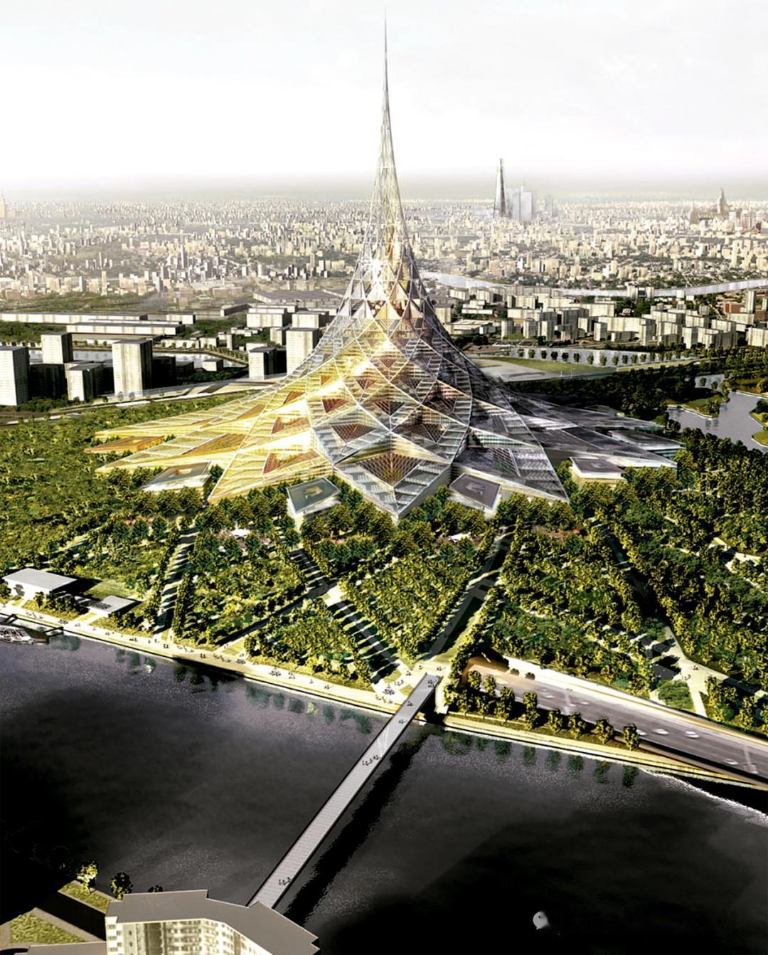 316亿元,这座超级共享地标仍有搁置! 据了解,总建筑面积达250万平方米、总建筑面积达250万平方米、总投资40亿欧元的水晶岛项目恐怕仍要搁置了。 项目位于俄罗斯纳加季诺半岛,濒临莫斯科河;根据规划,该建筑将容纳剧院、展览空间、零售和餐饮业务、酒店客房、服务式公寓以及一所学校。建筑犹如一顶“帐篷”,螺旋形态在一片巨大的景观公园中拔地而起,不过项目于2009年起实质性停工,目前处于无限期搁置状态。