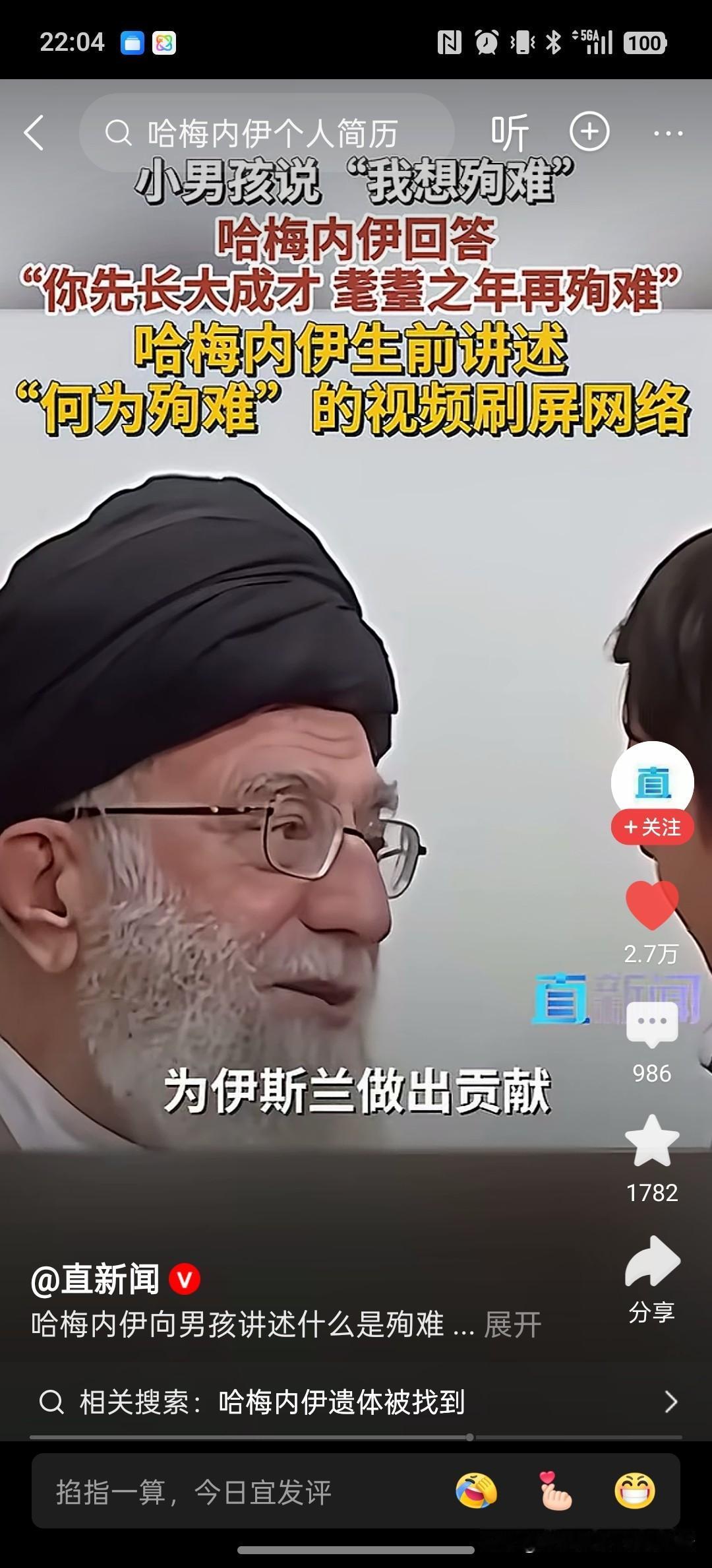 哈梅内伊寄语 小男孩说“我想殉难”,哈梅内伊答道:“你先长大成才,耄耋之年再殉难。” 这番话深意十足。他不认同鲁莽牺牲,主张先成长成才,用学识和贡献实现人生价值。身处动荡环境,他劝导年轻人珍惜生命,将热血转化为长期奋斗的力量,以知识和建设承载民族希望,展现了理性的远见与深沉的担当,网上充斥着侮辱,谎言,欺骗,都是对这位智者的诋毁! 虽然我不信伊斯兰教,但是我认为哈梅内伊给予这位小男孩正确的价值观,还是很不错的! 求仙问卜,不如自己做主 念佛诵经,不如本事在身!