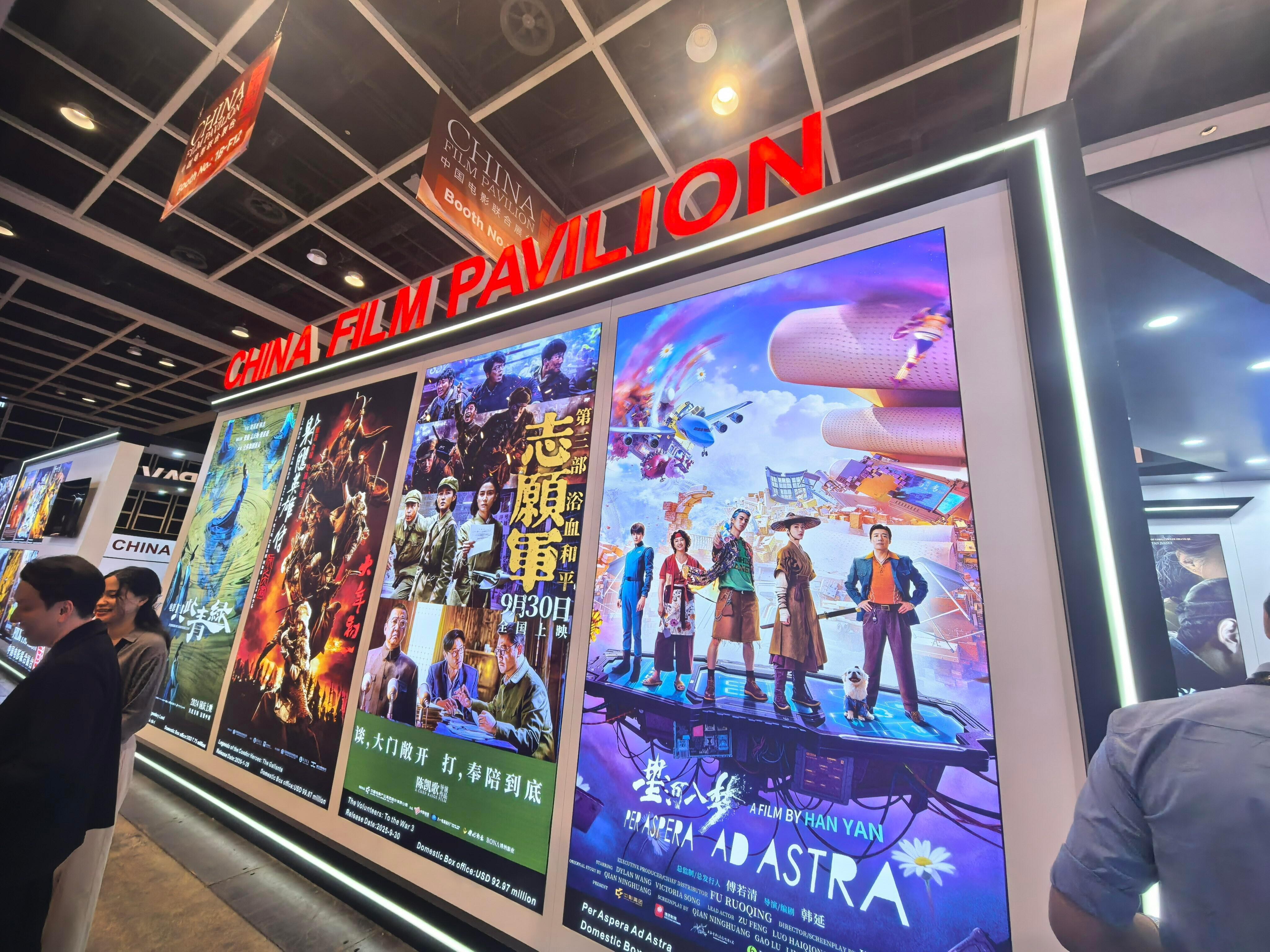 香港国际影视展,中国电影联合展台🈶:于适《镖人》《四渡》肖战《射雕英雄传》《得闲谨制》檀健次《震耳欲聋》 沈腾《飞驰人生》等