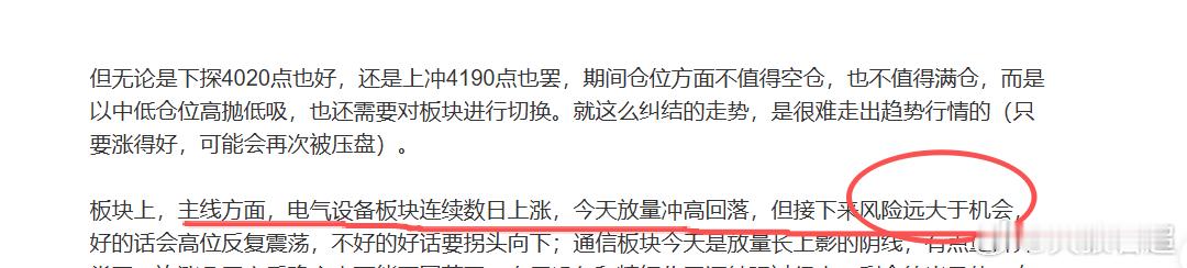 电气设备板块短线4连阴了(下图是3月11日的V+文章节选)