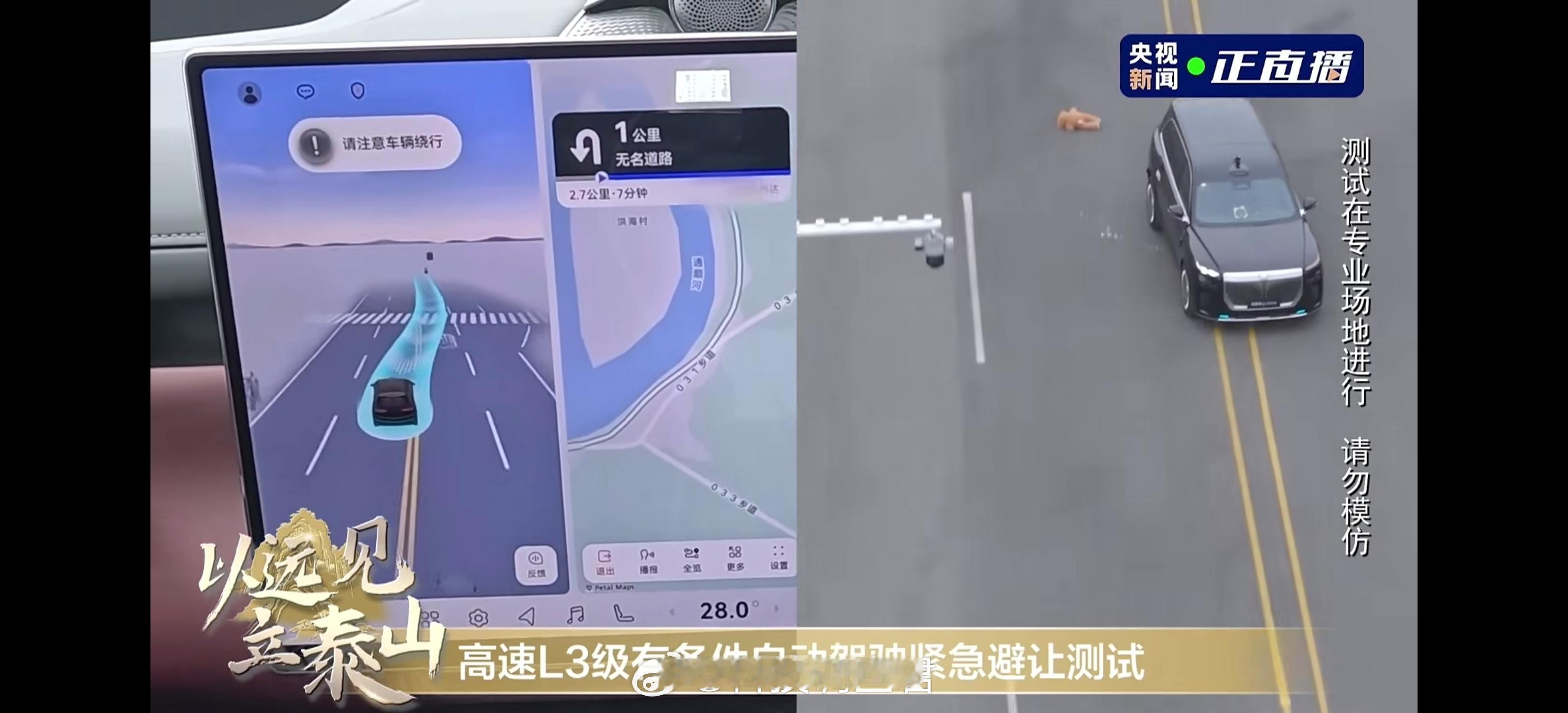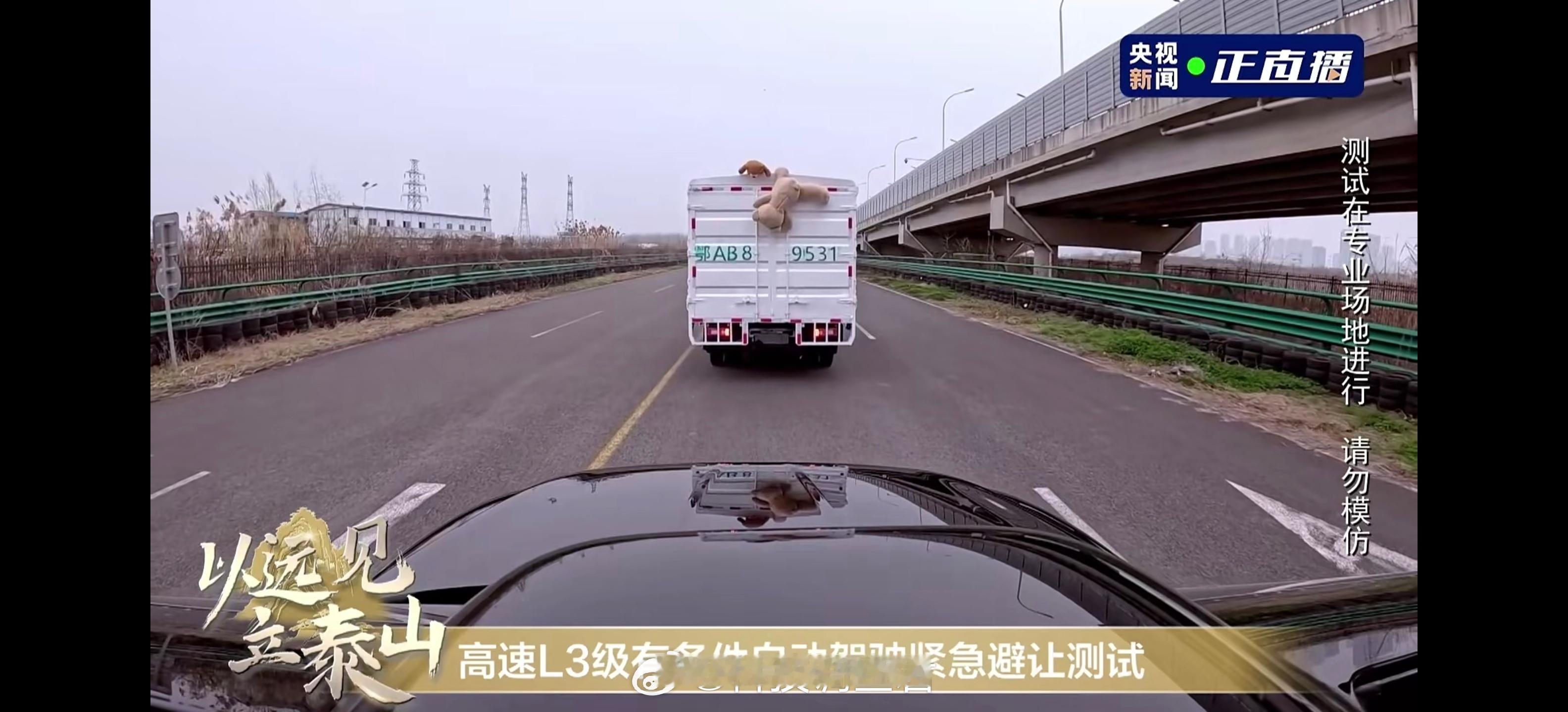 高速前车物品坠落时L3有条件自动驾驶紧急避让应对自如稳如泰山,反应迅速变道丝滑