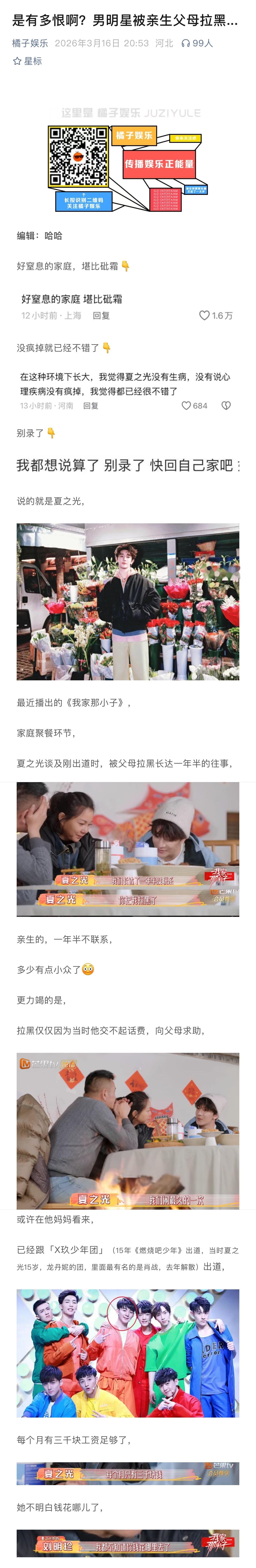 夏之光因为交不起话费,被父母拉黑了一年半…