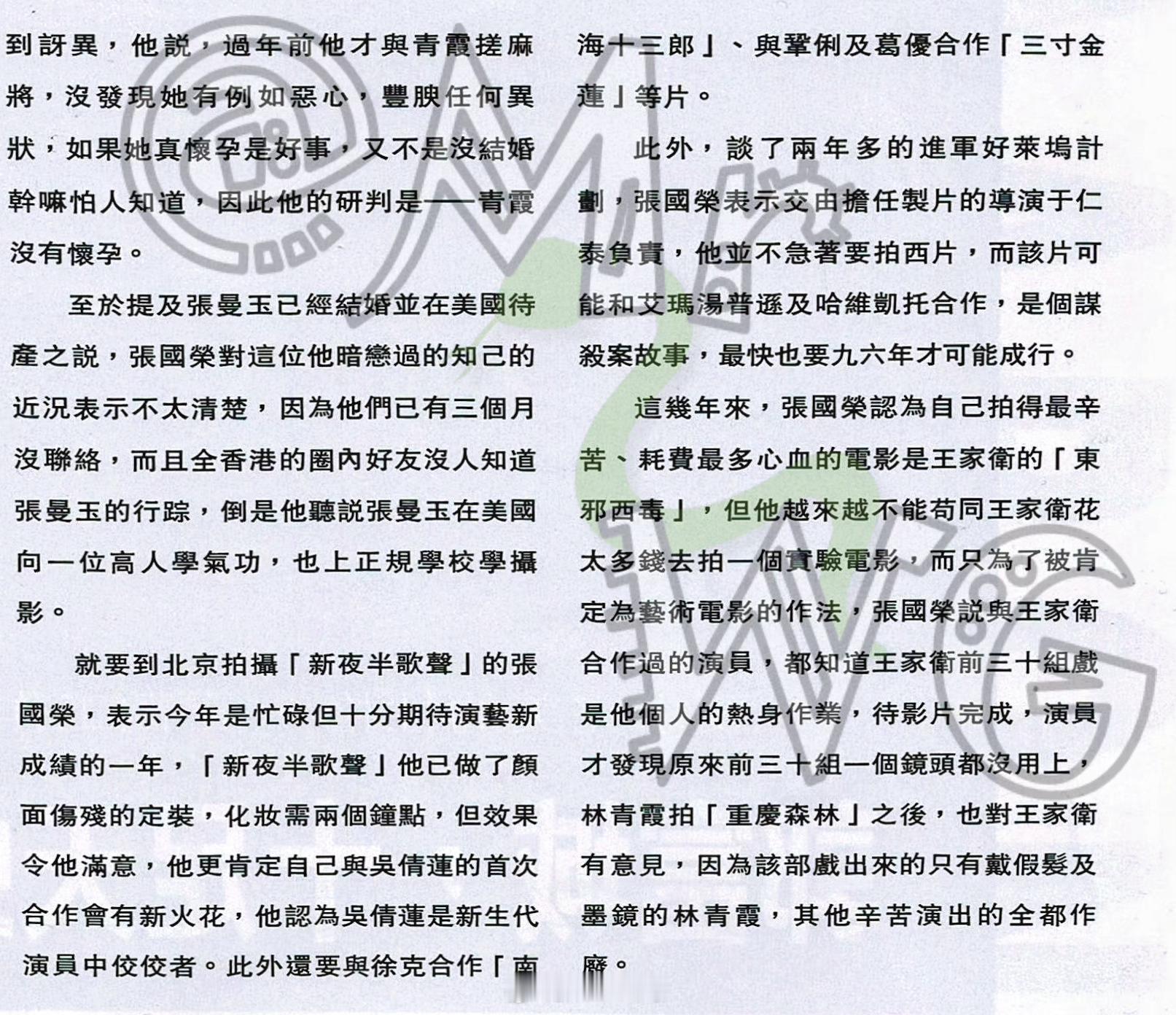 张国荣独家扫描 卧槽!所以,原本Leslie是要演【南海十三郎】的❓❗️真是第一次淘到这则报道✍️📰——萌帅小厨哥,1995年贺岁档,张国荣张国荣 与徐克导演,赴台北宣传【金玉满堂】,哥哥接受《银色世界》记者访问,谈到自己接下来的拍片计划,以及对于王家卫拍摄做派的不认同。二十三周年继续宠爱张国荣