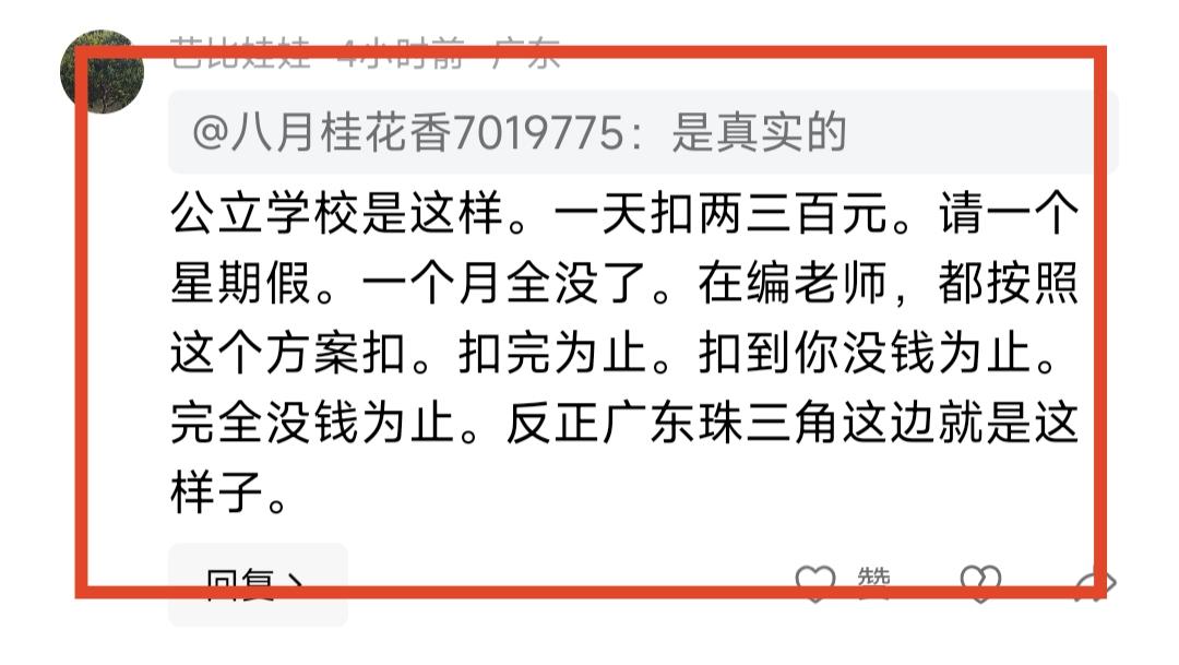 在我们这里,老师请事假或者请病假扣钱真的很厉害的。有一次我请假回老家补办教师资格证,请了三天假,扣了700多元,我当时都震惊了,教书几十年也难得请一天假,没想到请一次假的经济代价这么大,心里有点隐隐作痛[笑哭]。 其实这还不算,如果老师生病住院,或者受伤住院,如果连续请假两三个星期,一个月基本上就剩不了多少钱了,都给扣得差不多了。所以有些老师为了避免扣得太惨,拖着病体也在中途到学校上班一天,据说这样做可以减少扣款。但老师如果得的是重症的话,不知道还会不会这样扣款,我不是特别清楚。 各个地方执行的政策可能不一样吧,不过我觉得这还是有些许残酷。老师这个职业其实挺容易生病的,所以以前有老师说真的病不起,病不起有两个含义,一个含义是如果老师生病请假,就得请别的老师代课,自己欠别的老师一个人情。另一个含义是,如果生病住院,真的要扣很多工资的。 所以身体是革命的本钱,是工资的保障,身体好,什么都好。教育