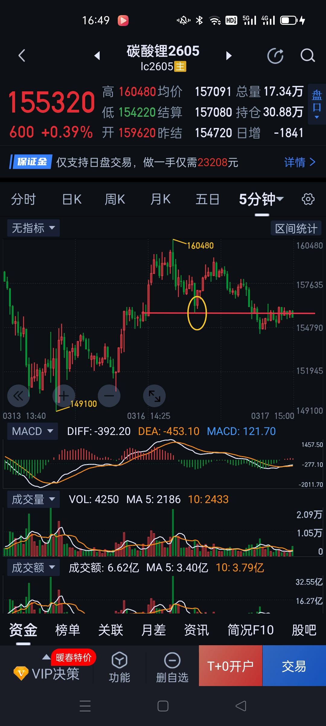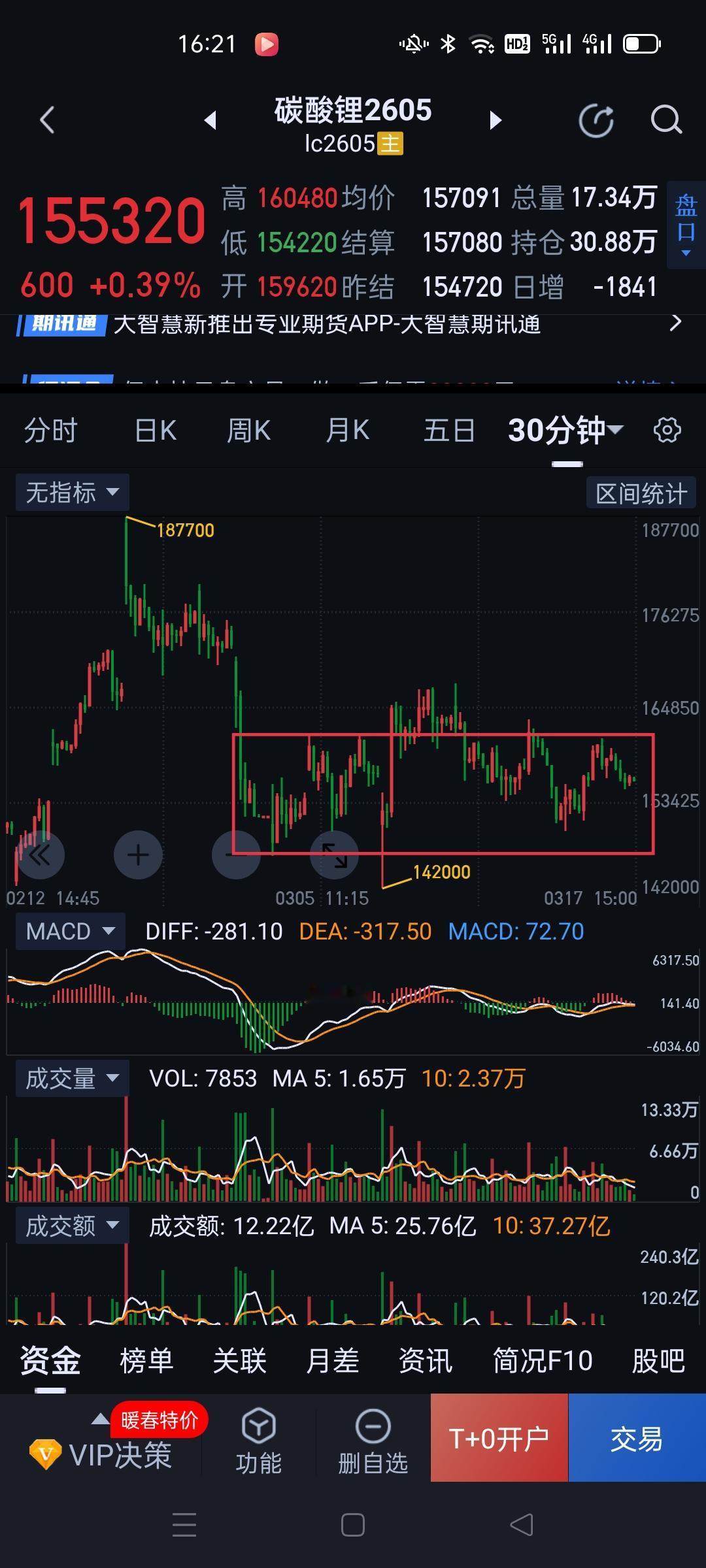 碳酸锂2605,多、空博弈近期或见分晓。 碳酸锂三十分钟图仍维持收敛形态。最终方向选择也迫在眉睫了。 当下走势结构处于图(2)五分钟中枢延伸状态。该中枢最终站稳还是有效破坏,是后期形成阶段性方向的关键。 细节上,明天可观察图(3)155600能否有效站稳。站稳上方压力位162840。若不站稳,则要防止回落反抽形成图(4)一分钟中枢的三类卖点。
